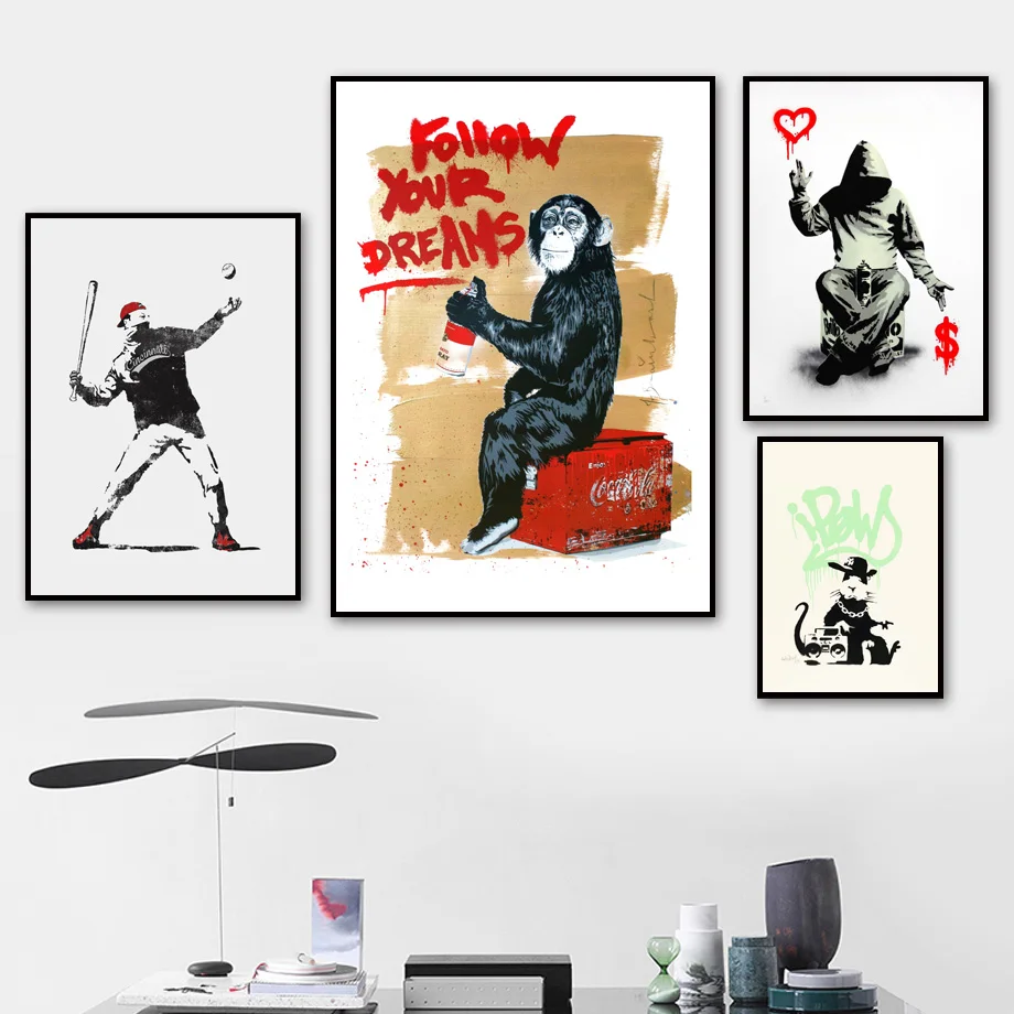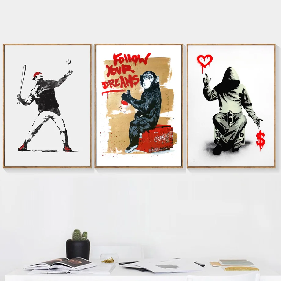 Настенная живопись на холсте, уличное искусство, граффити, бейсболист, орангутан, скандинавские плакаты и принты, настенные картины для гостиной