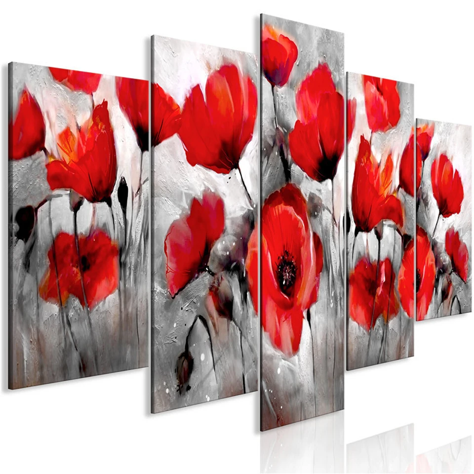 Маки 5 шт. Алмазная картина красный желтый цветочный Алмаз Вышивка Мульти-картина, 5d Алмазная мозаика, полный, квадратный/круглый дрель,