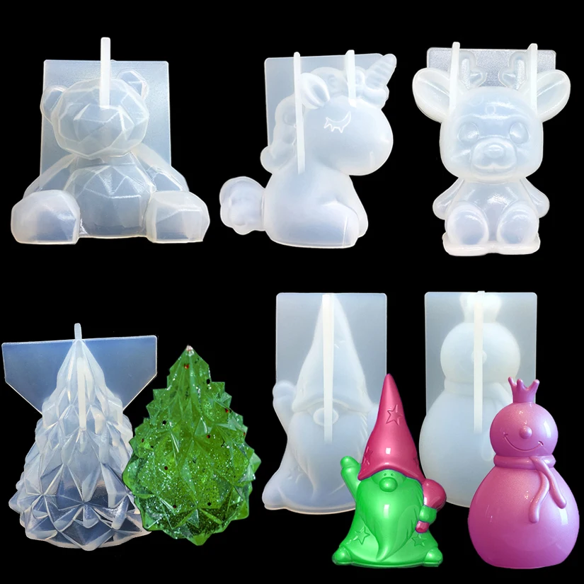 3D Медведь Единорог Рождественская елка олень Силиконовая Форма Смола свеча инструменты для украшения тортов из мастики