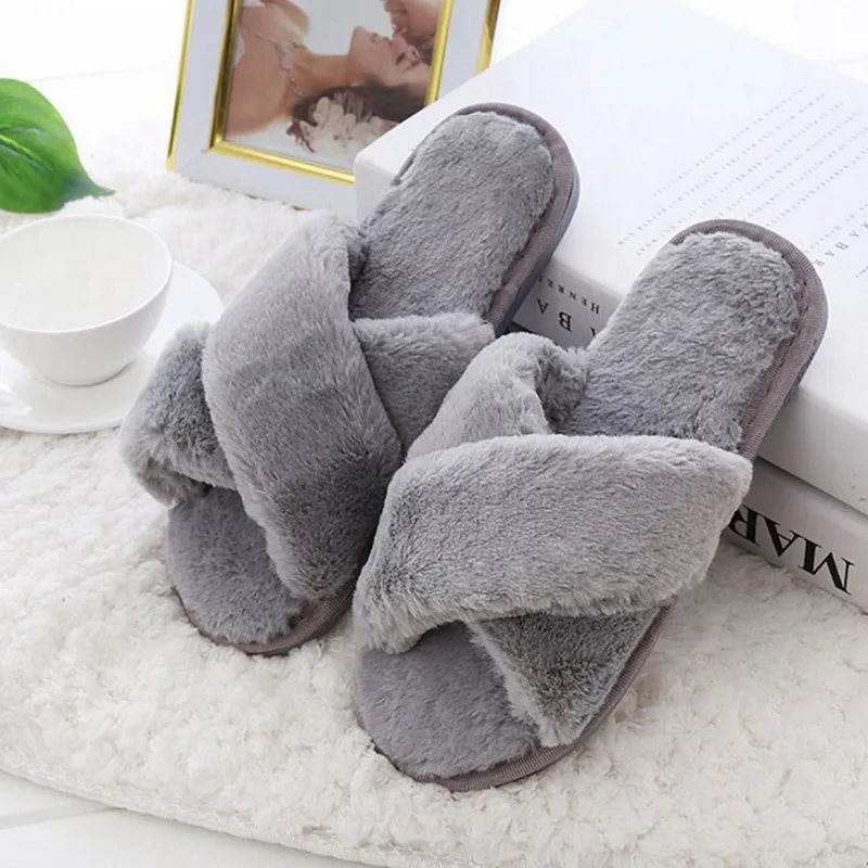 Женские зимние тапочки, однотонная обувь, домашние тапочки в форме Креста, женские домашние меховые теплые мягкие сланцы, женские плюшевые Тапочки