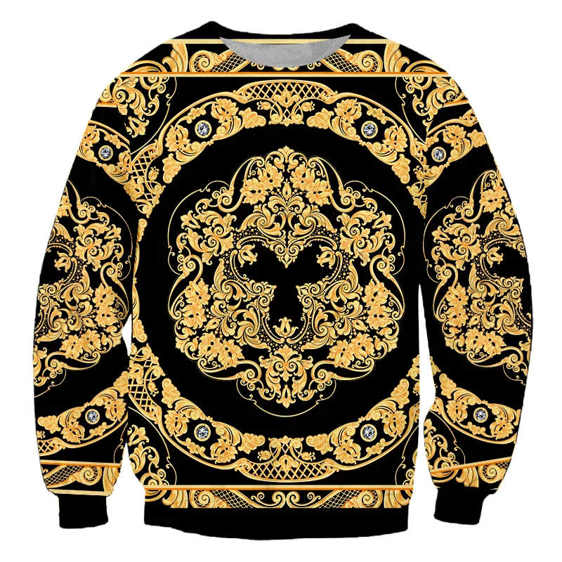 Свитшот IFPD в стиле барокко для мужчин и женщин, роскошный пуловер с длинными рукавами, с 3D-принтом короны и золотых цветов, европейские и американские размеры