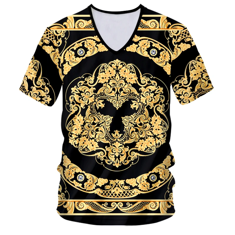 Модная мужская футболка IFPD с V-образным вырезом, с золотыми цветами, Размеры ЕССША, летняя роскошная мужская одежда с коротким рукавом в стиле Королевского барокко