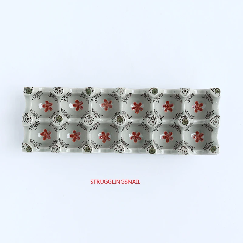 Прямоугольная керамическая яичная тарелка в японском стиле, 12 Ячеек