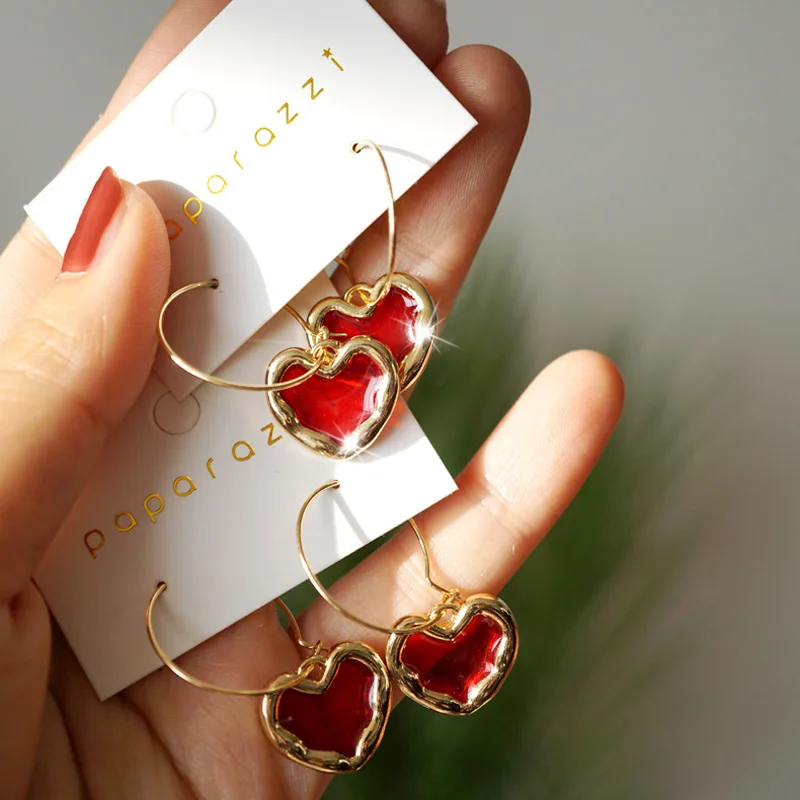 Серьги-кольца красное сердце женские, позолоченные антиаллергенные ювелирные украшения, роскошные дизайнерские милые висячие украшения для ушей для девушек и женщин, 2020