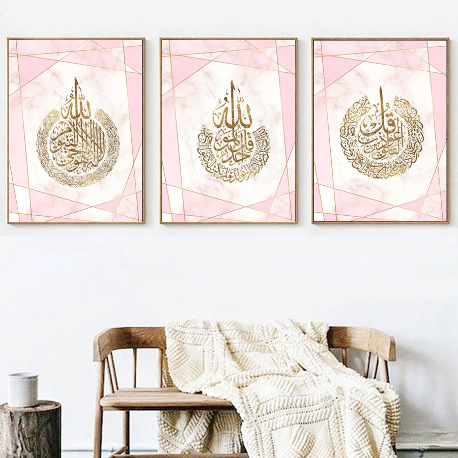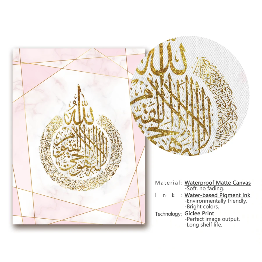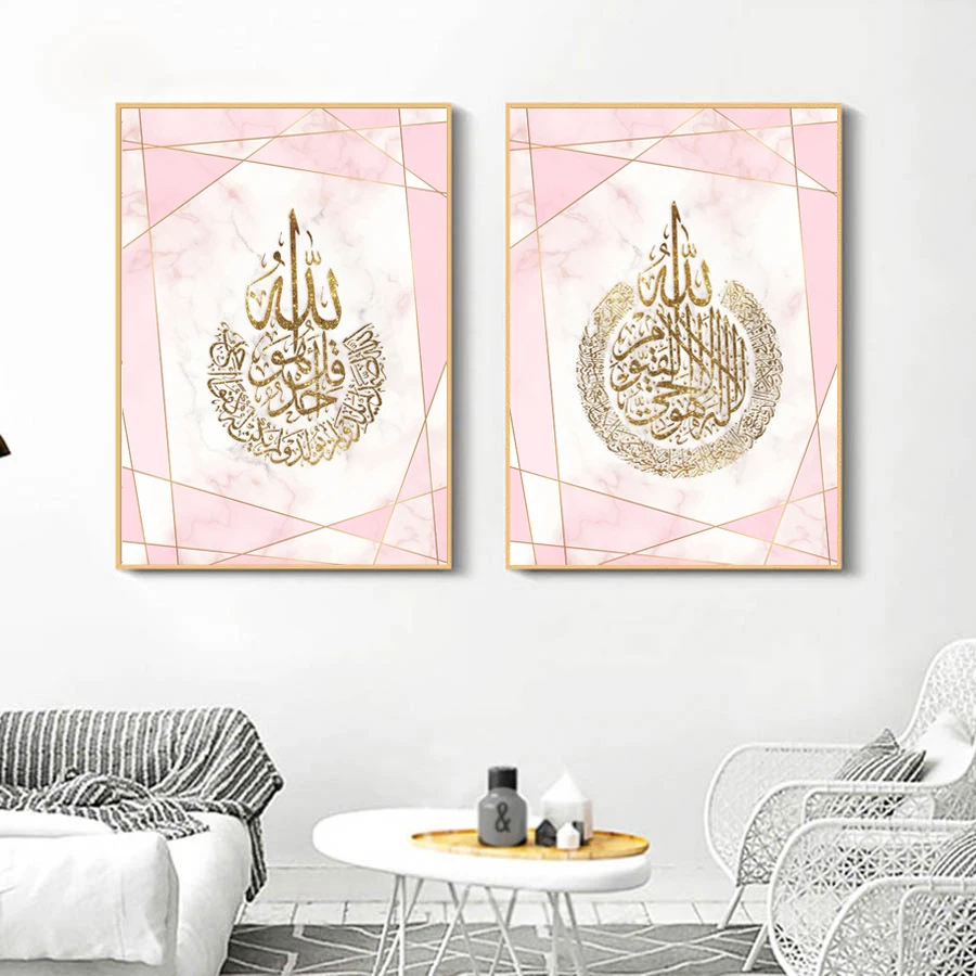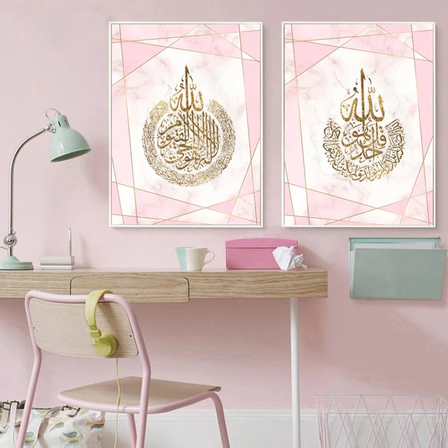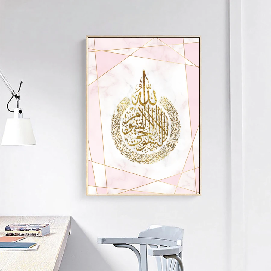 Мусульманская арабская каллиграфия, постер на стену, розовое золото, мусульманский Коран, Картина на холсте, Рамадан, украшение для дома, гостиной
