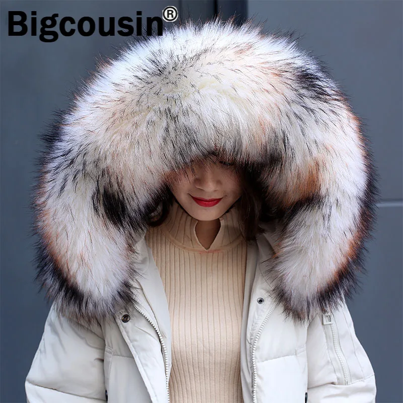 Женское роскошное зимнее пальто с меховым воротником из искусственного меха енота, шарфы, большие размеры, теплые мужские куртки для детей, модные женские накидки, CG08