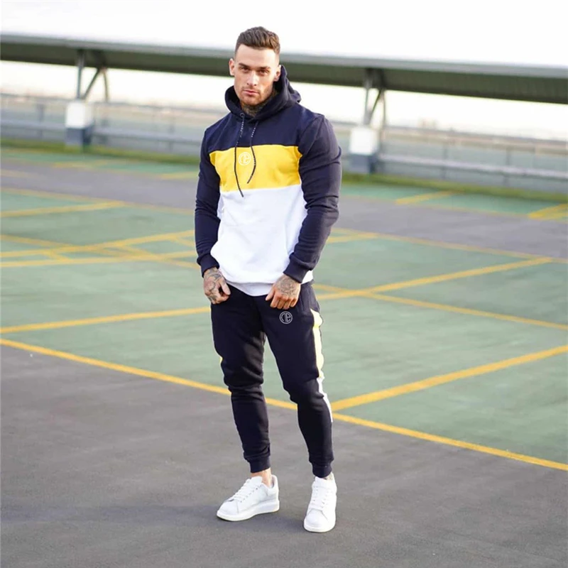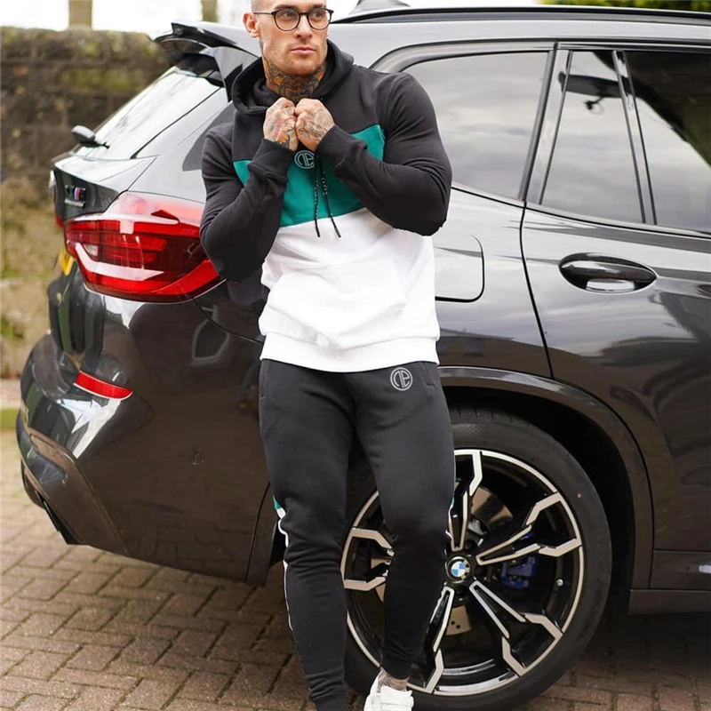 Костюм спортивный мужской для бега, Свитшот и длинные штаны, спортивный зал, толстовка, брюки для фитнеса, одежда для бега