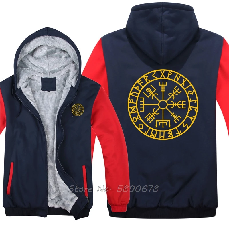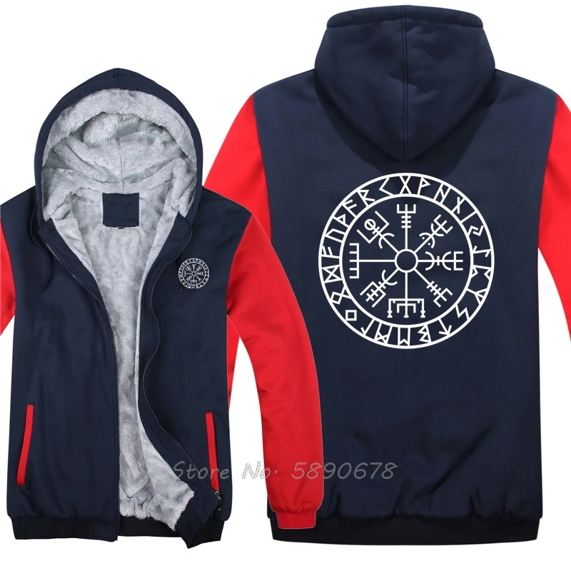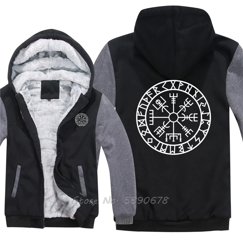 Толстовка мужская зимняя с компасом-викингом, вегвизиром, рунами и Навигатором