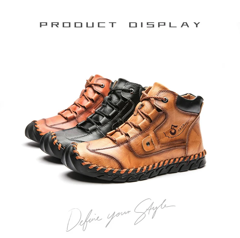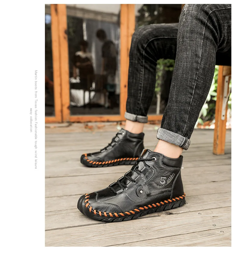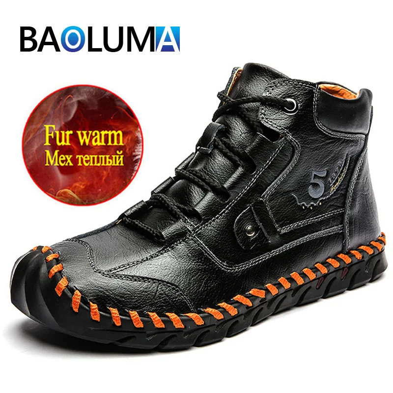 Мужские зимние ботинки ручной работы, мягкие ботинки из натуральной кожи, плюшевые теплые мужские ботинки, уличные Водонепроницаемые Мужские ботинки в западном стиле