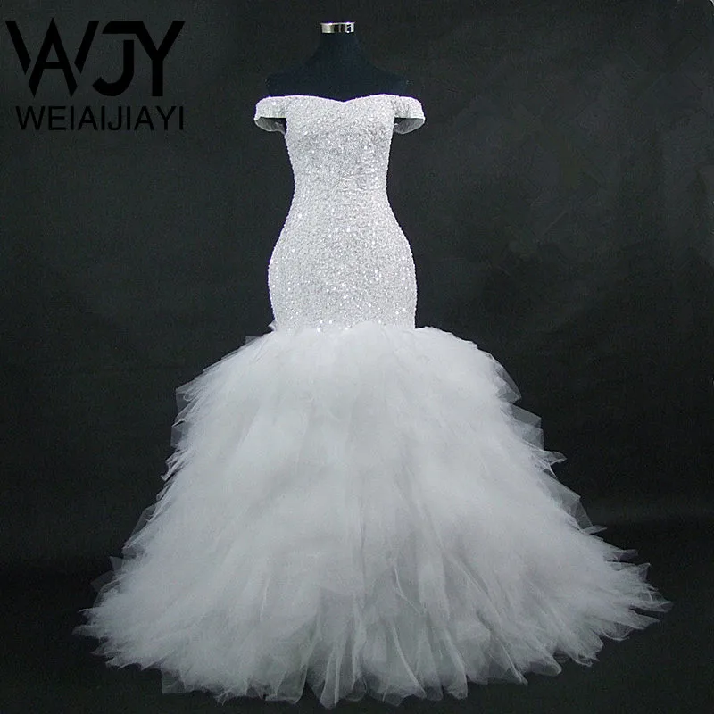 Женское свадебное платье с блестками, пышная юбка из многоярусного тюля с открытыми плечами и бусинами, сексуальное платье невесты