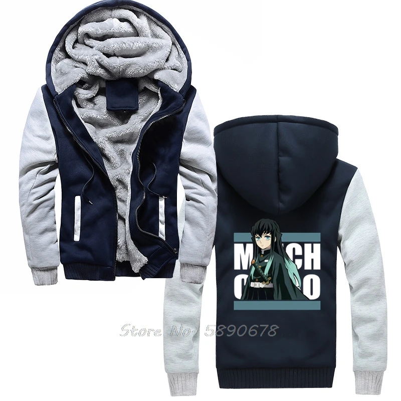 Мужская толстовка с капюшоном Muichiro Tokito ( Kimetsu No Yaiba рассекающий демонов), толстовка с капюшоном из аниме, мужские зимние толстые теплые толстовки, свитшоты, куртки