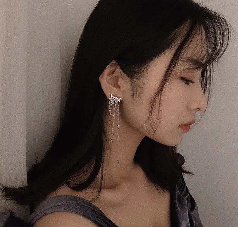 Серьги-подвески женские из серебра 925 пробы, 1 шт.