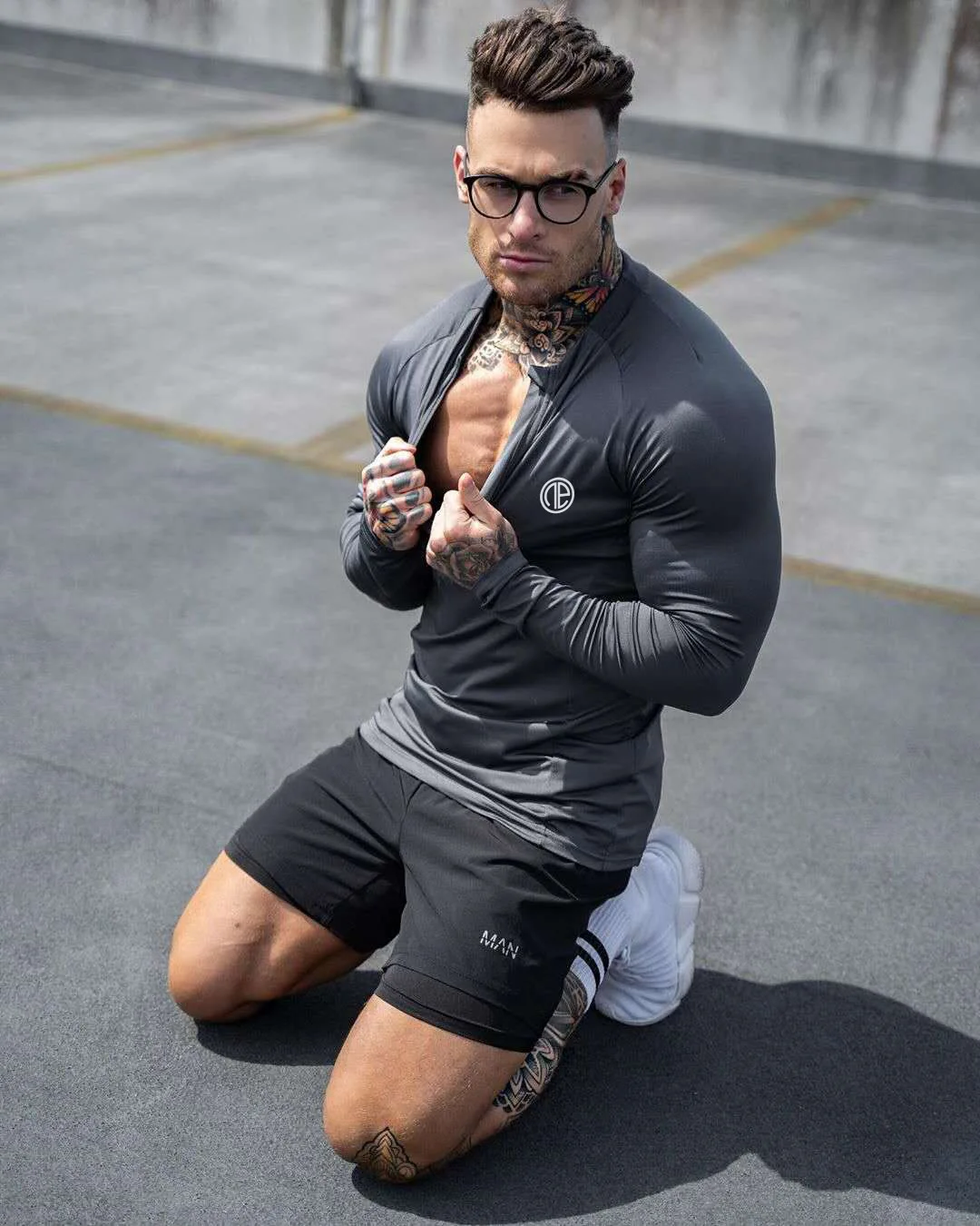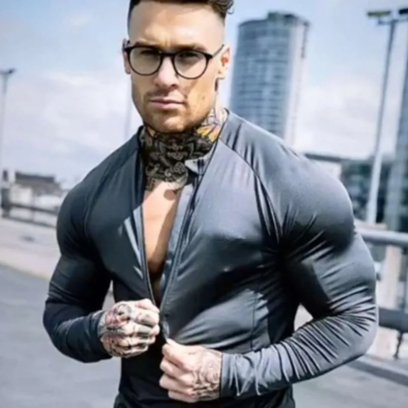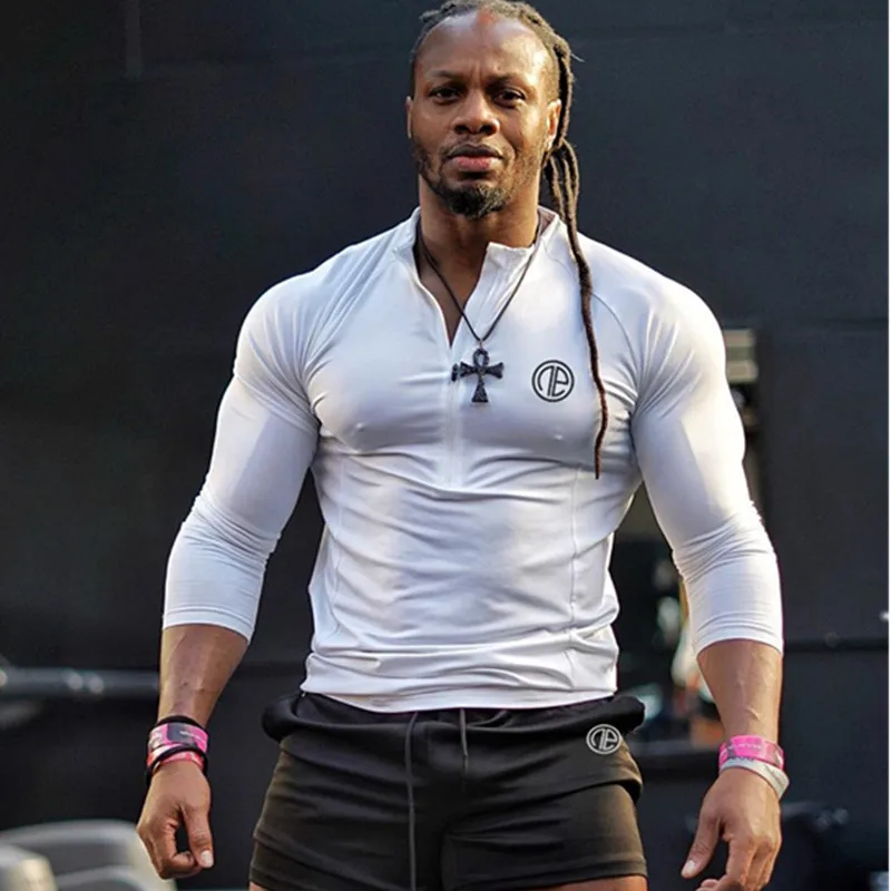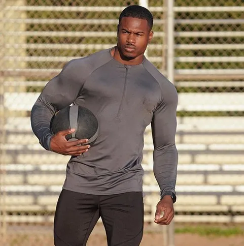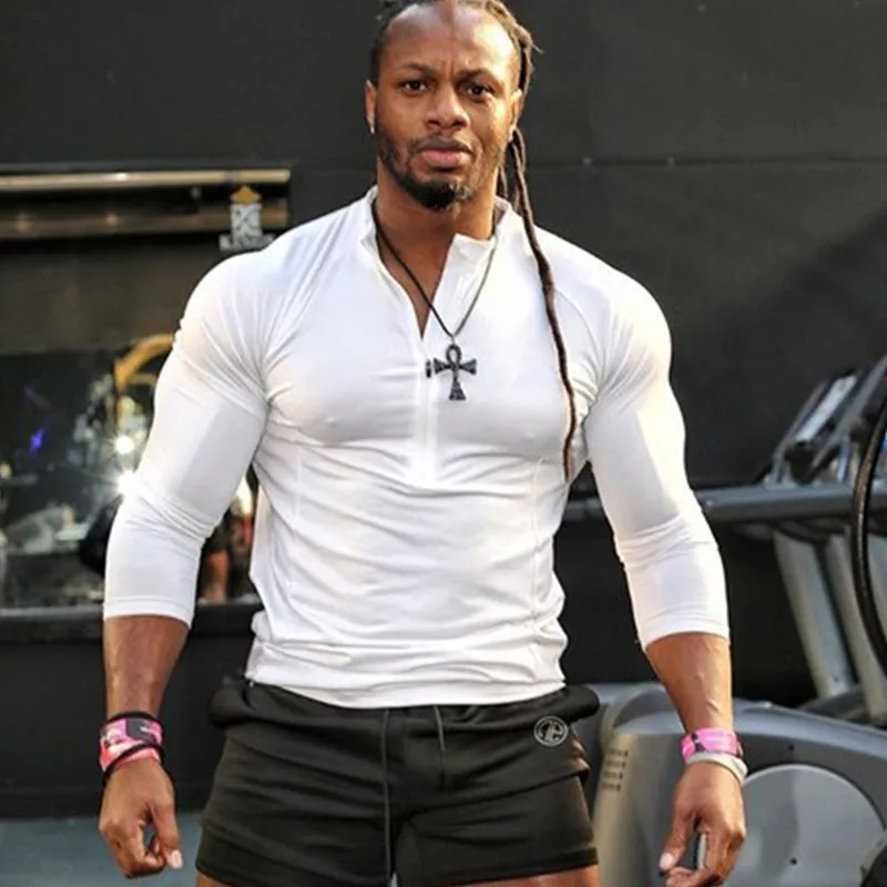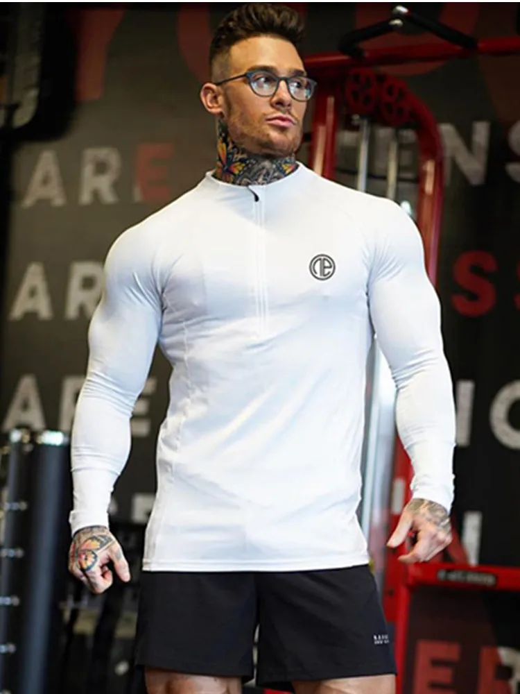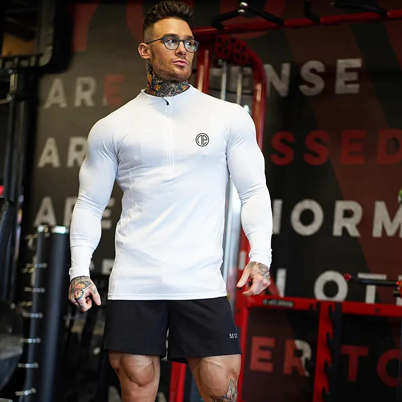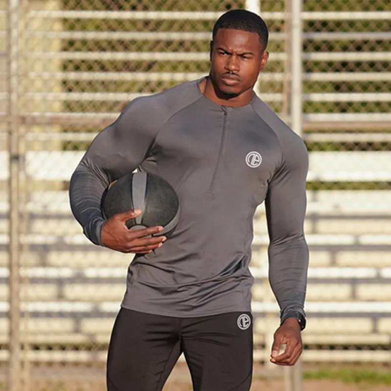 Спортивная рубашка для мужчин на молнии с вырезом, фитнес-футболки для мужчин, футболка для бега с длинным рукавом, быстросохнущая Спортивная футболка для бодибилдинга, тренажерные залы
