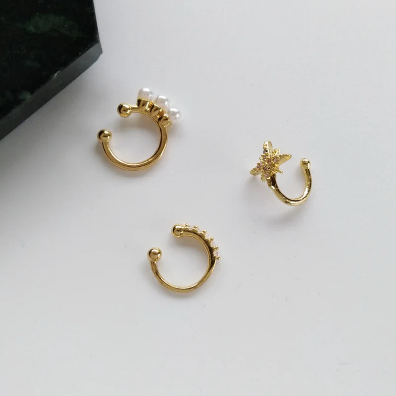 Цельные блестящие стразы шестиконечная звезда серьги-клипсы для ушей без пирсинга имитация жемчуга поддельные серьги-клипсы для пирсинга