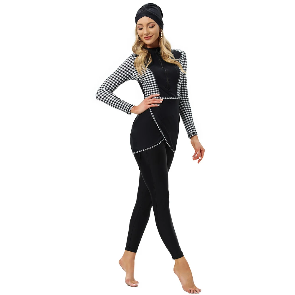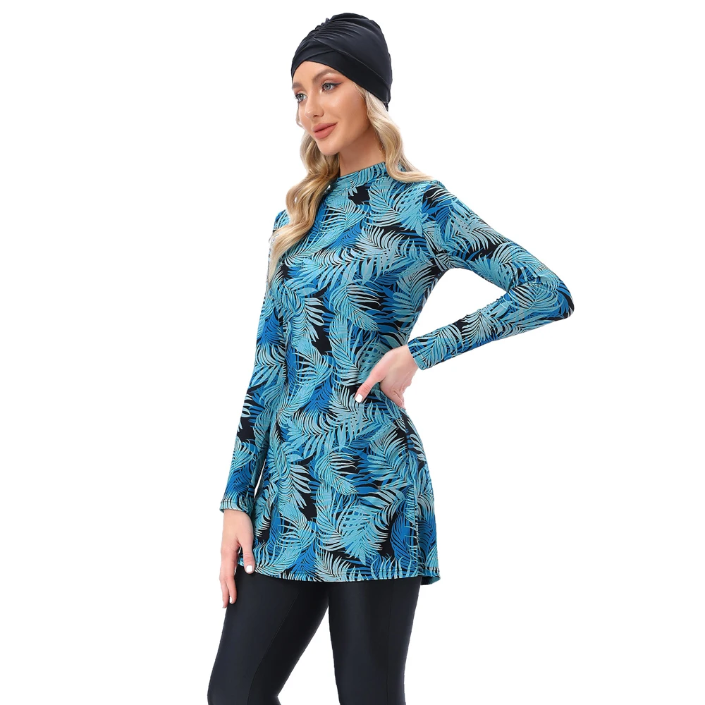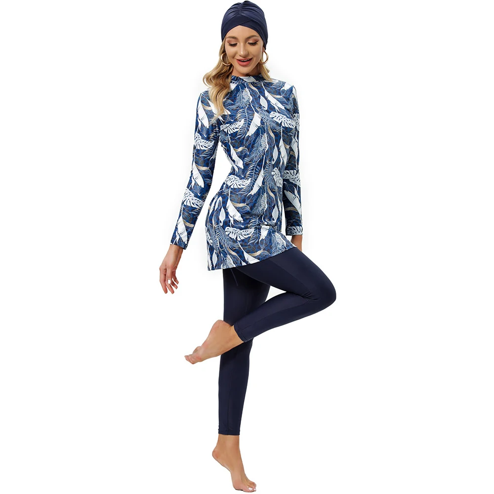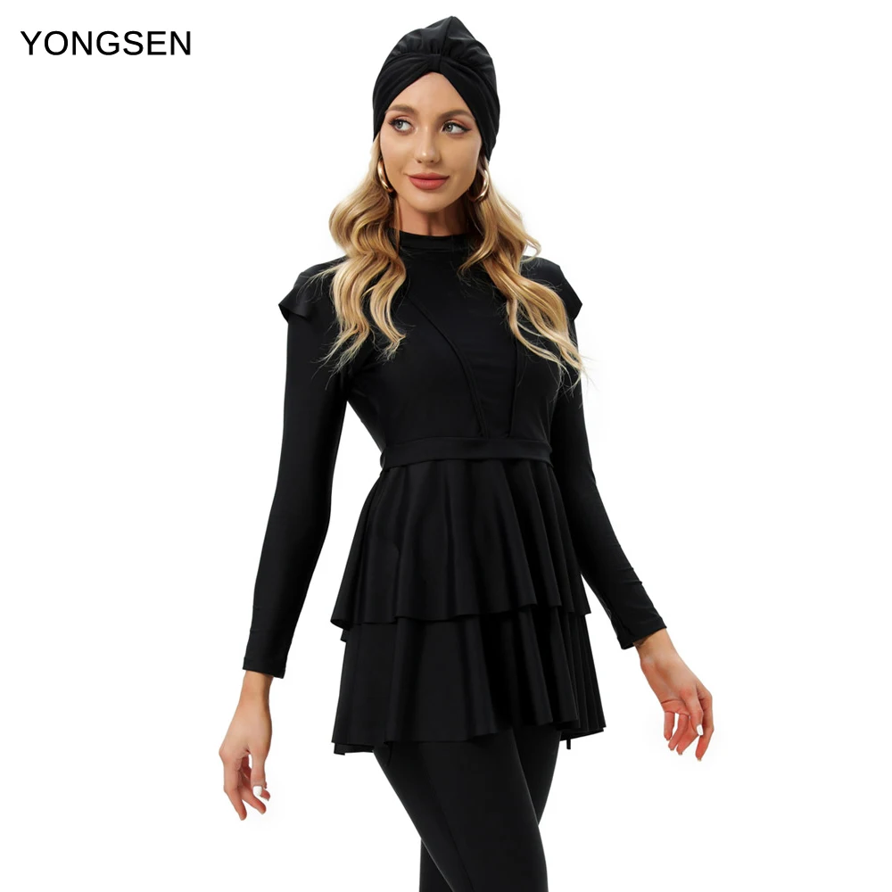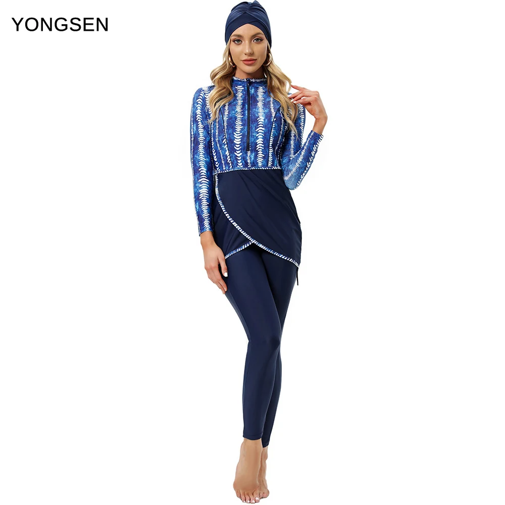 Женский скромный Мусульманский купальник YONGSEN 2022, спортивный хиджаб в стиле пэчворк, купальник с длинными рукавами, 3 шт., одежда для исламского Буркини, купальный костюм