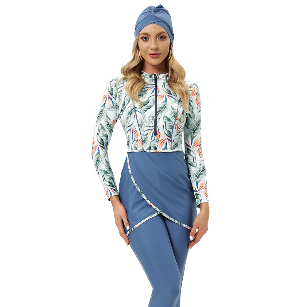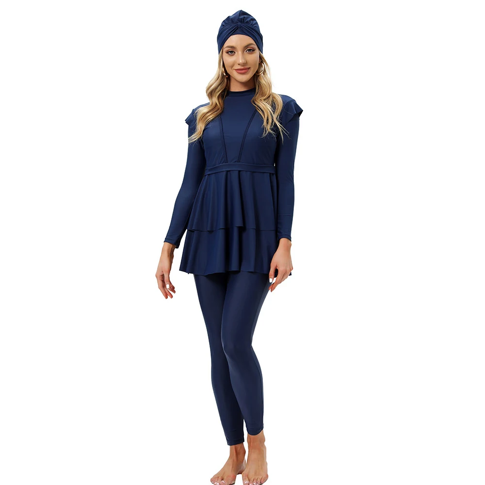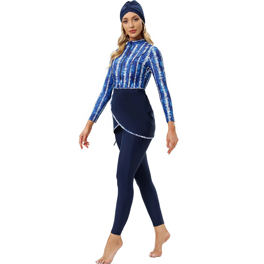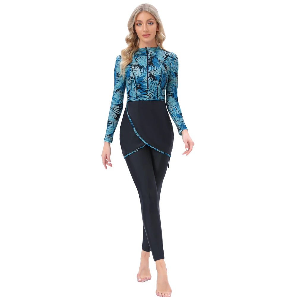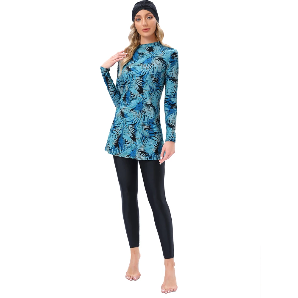 Женский скромный Мусульманский купальник YONGSEN 2022, спортивный хиджаб в стиле пэчворк, купальник с длинными рукавами, 3 шт., одежда для исламского Буркини, купальный костюм