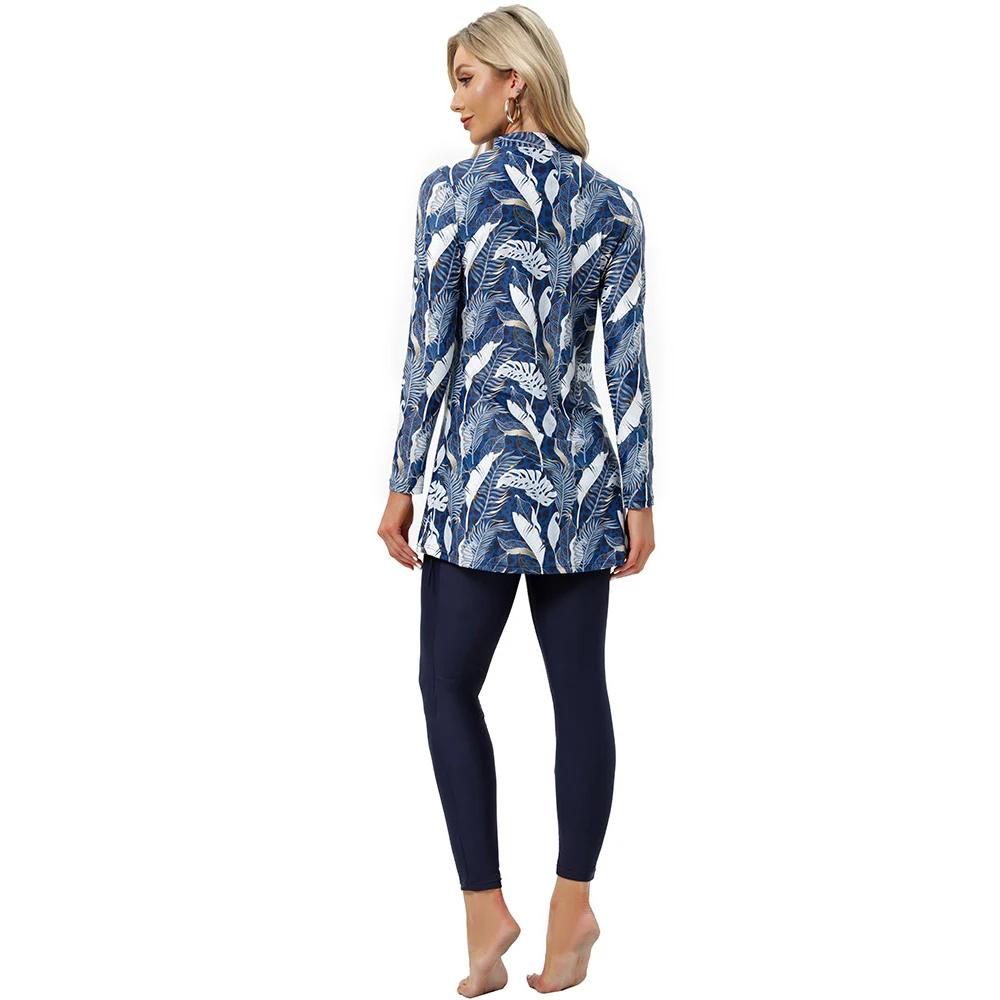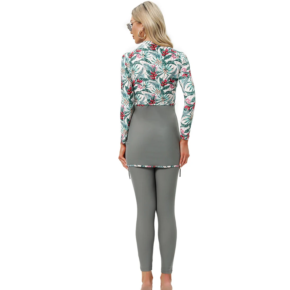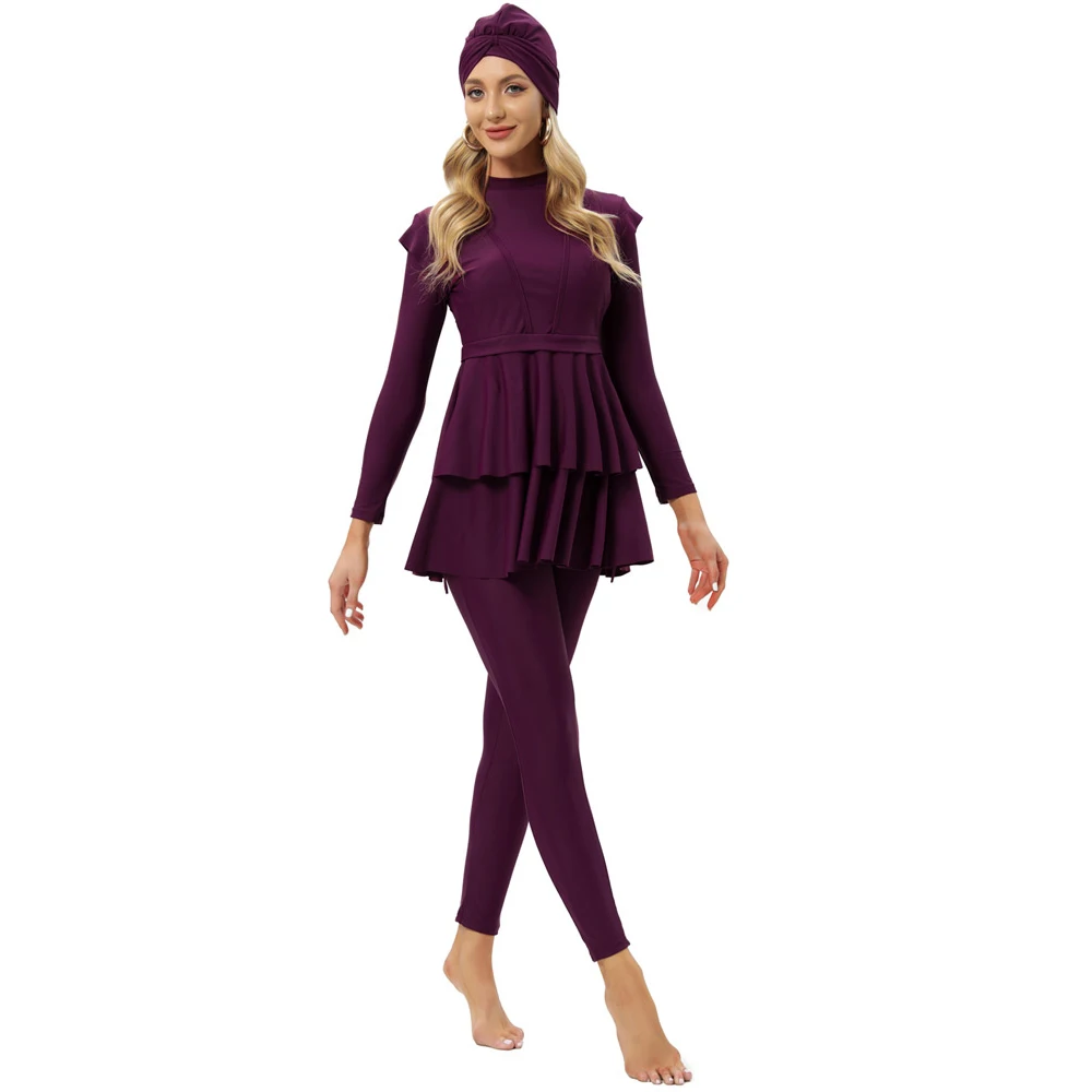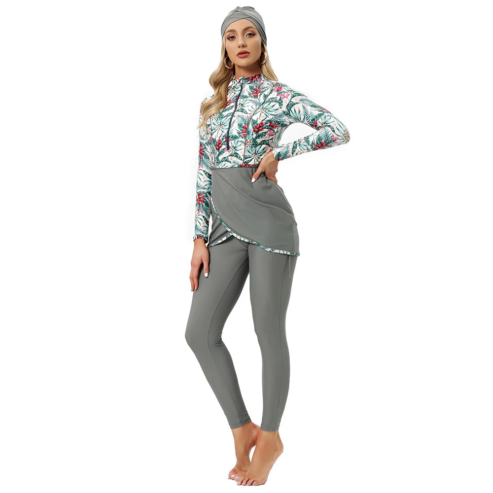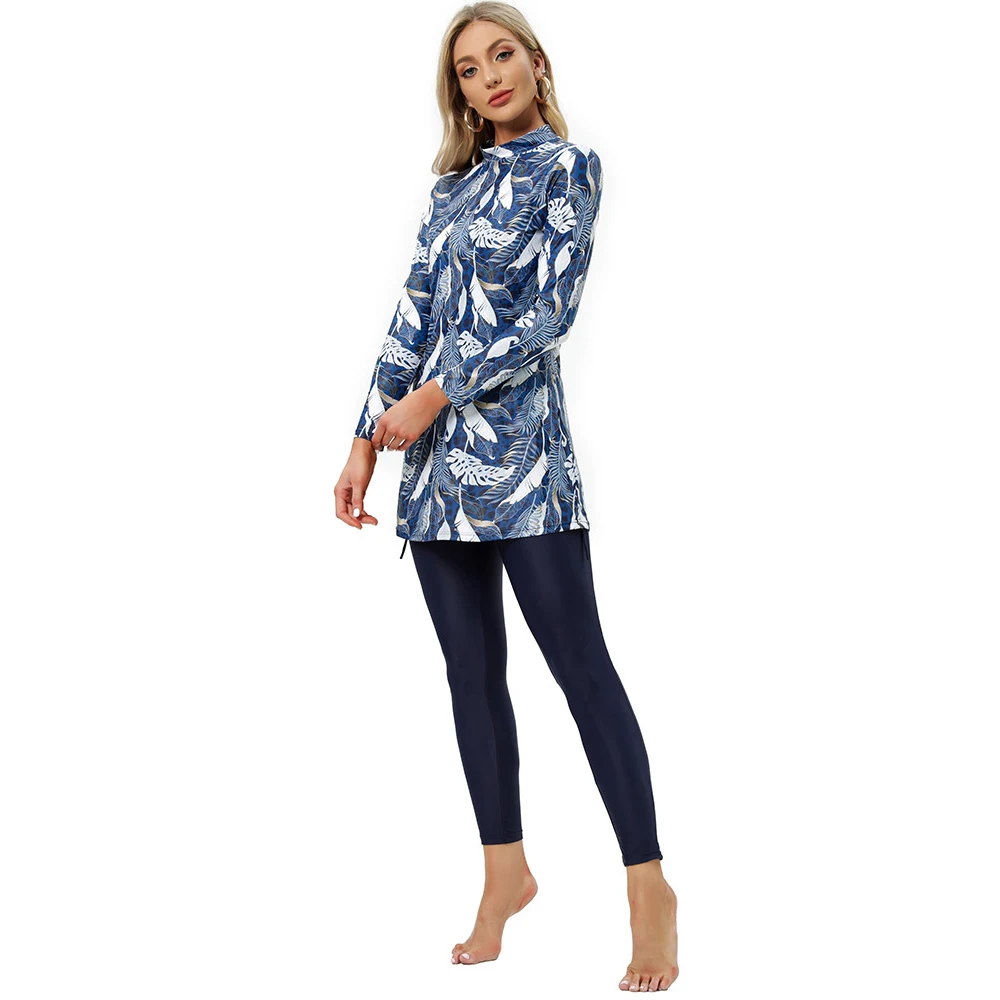 Женский скромный Мусульманский купальник YONGSEN 2022, спортивный хиджаб в стиле пэчворк, купальник с длинными рукавами, 3 шт., одежда для исламского Буркини, купальный костюм