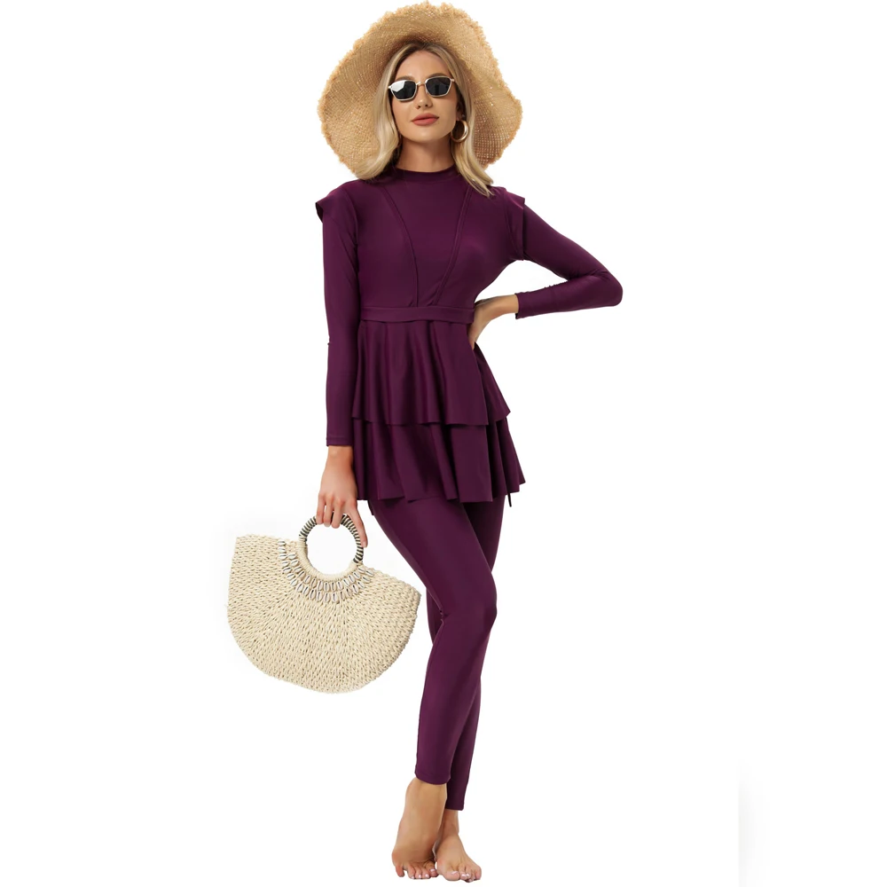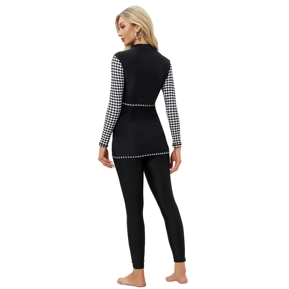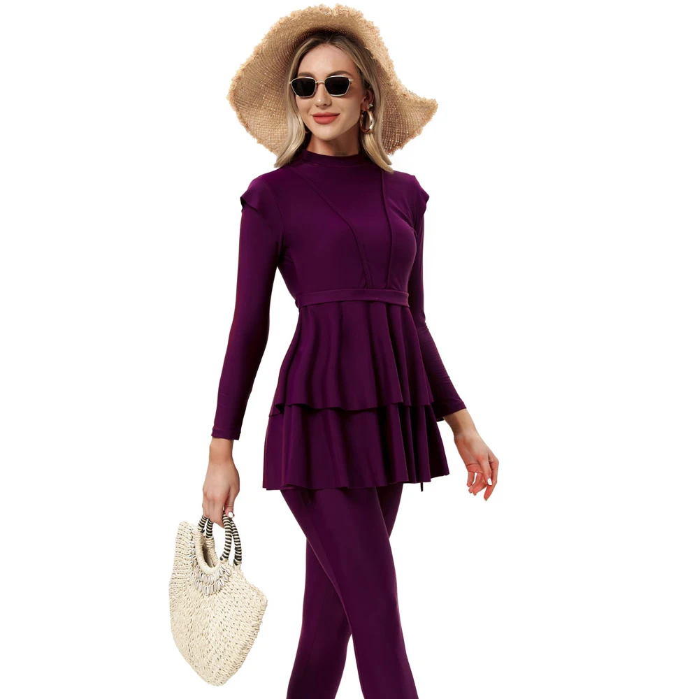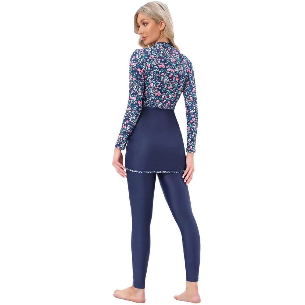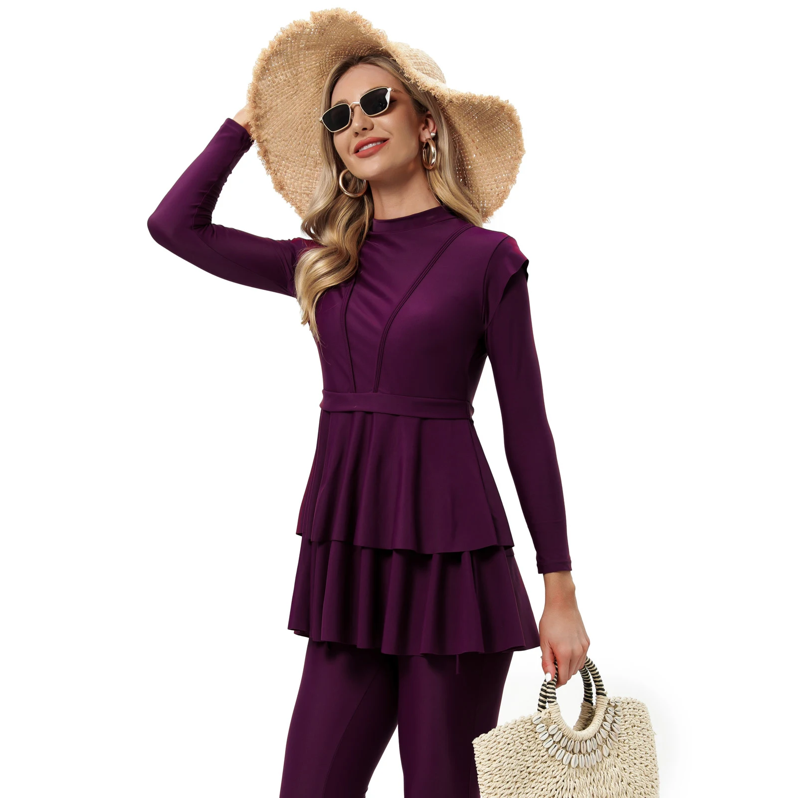 Женский скромный Мусульманский купальник YONGSEN 2022, спортивный хиджаб в стиле пэчворк, купальник с длинными рукавами, 3 шт., одежда для исламского Буркини, купальный костюм