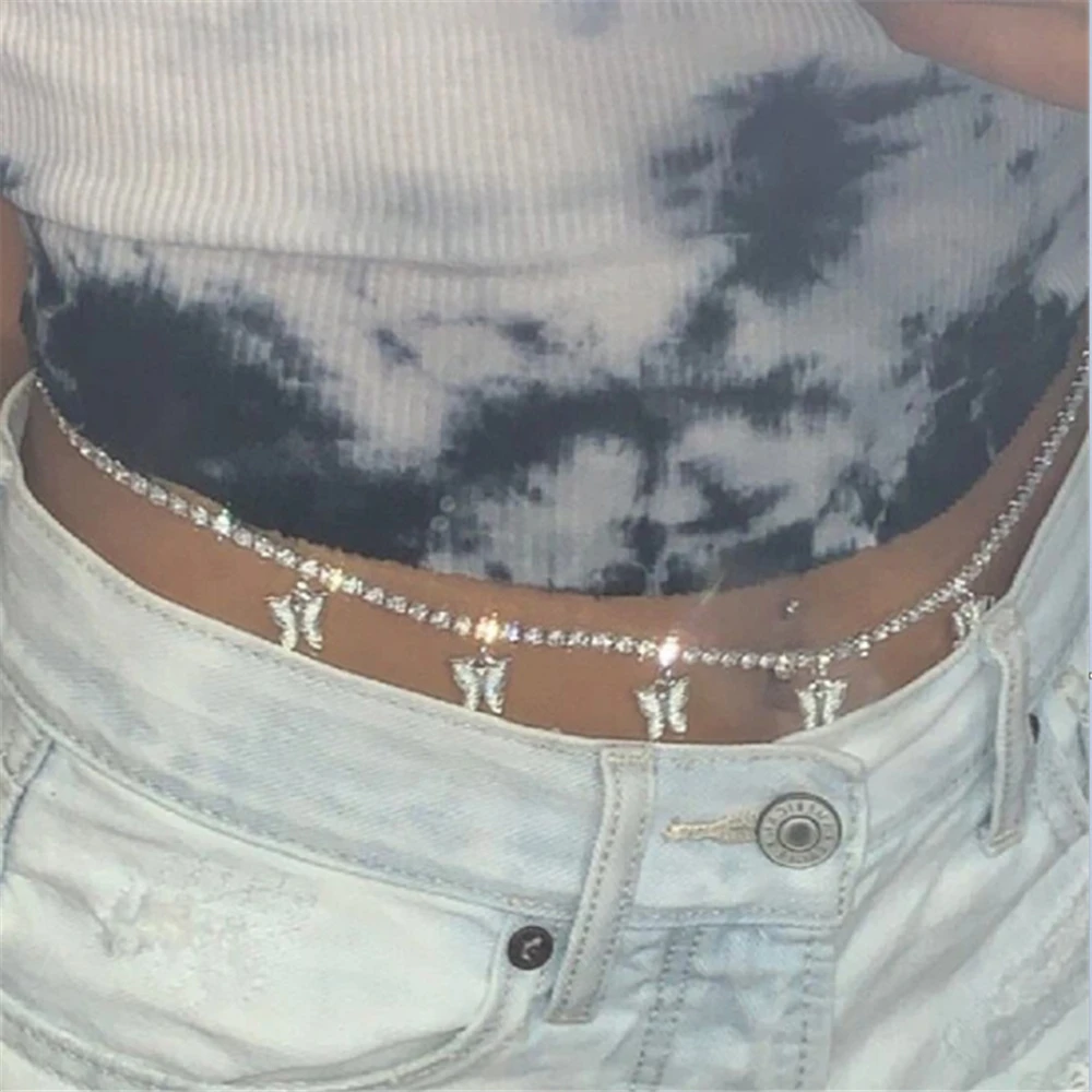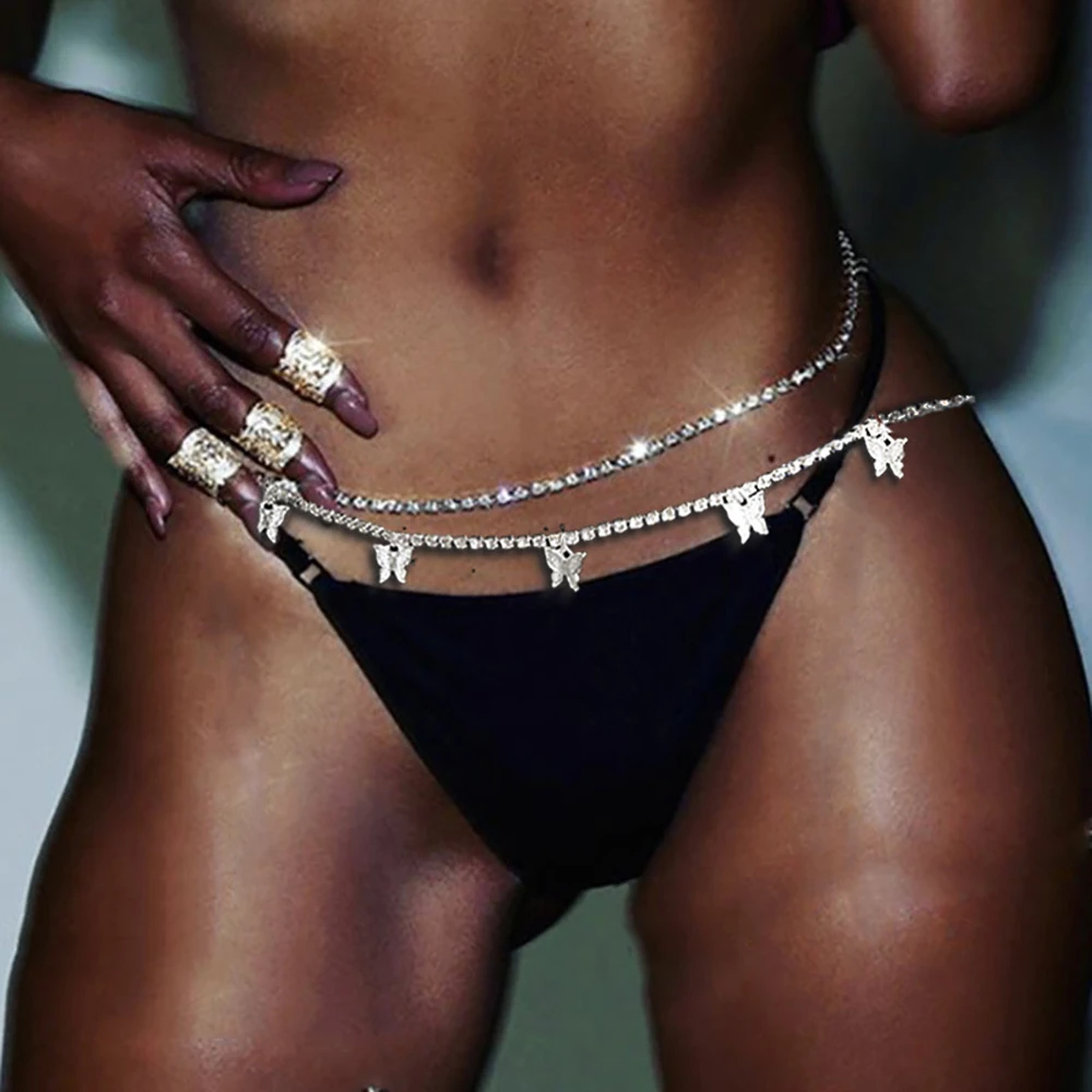 Цепочка женская с подвеской-бабочкой, модное ожерелье с кристаллами, соблазнительный пояс для талии, Ювелирное Украшение для фестиваля, цвет золото и серебро