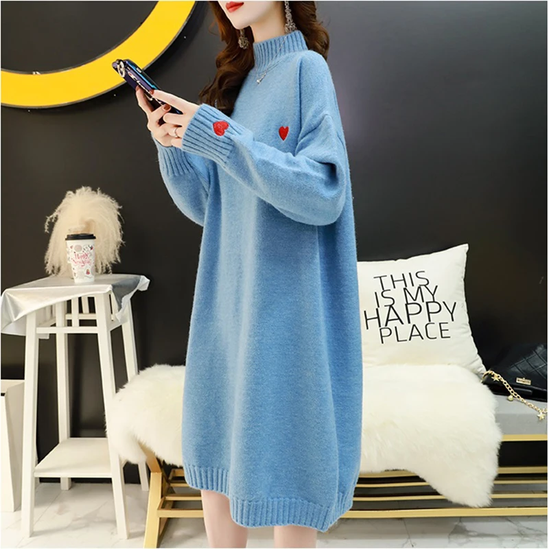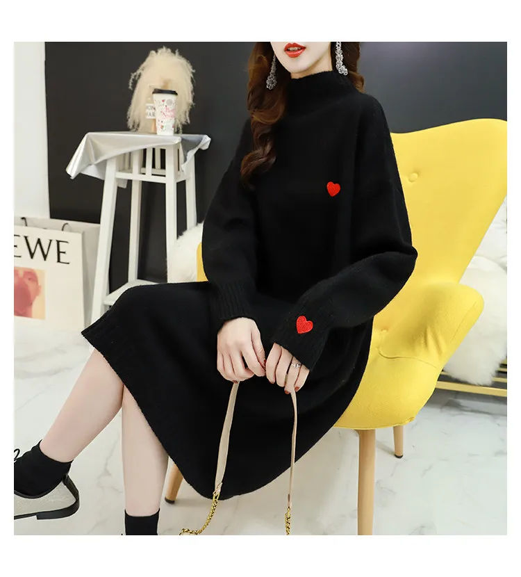 Женское трикотажное платье, свободное элегантное платье средней длины с вышивкой сердца и рукавами-фонариками, модель Z708, Осень-зима 2020