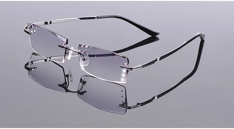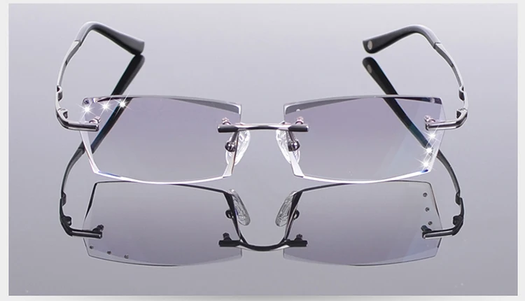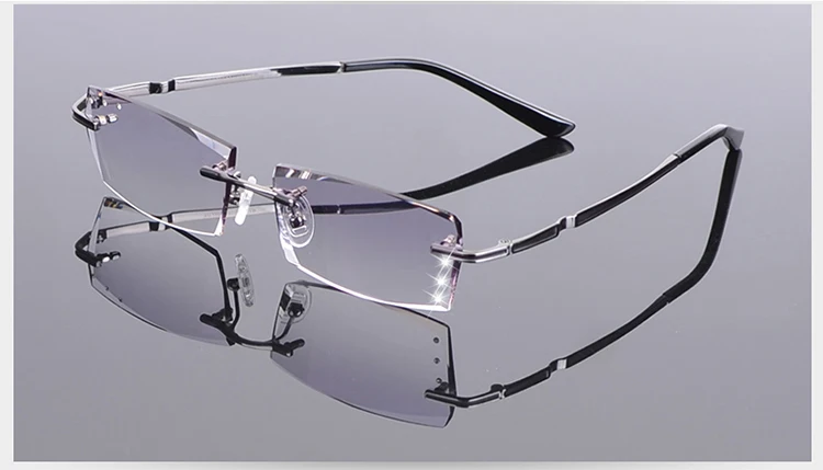 Очки для чтения мужские без оправы, титановые безрамные оптические очки с градиентными серыми стразами, для резки и дальнозоркости