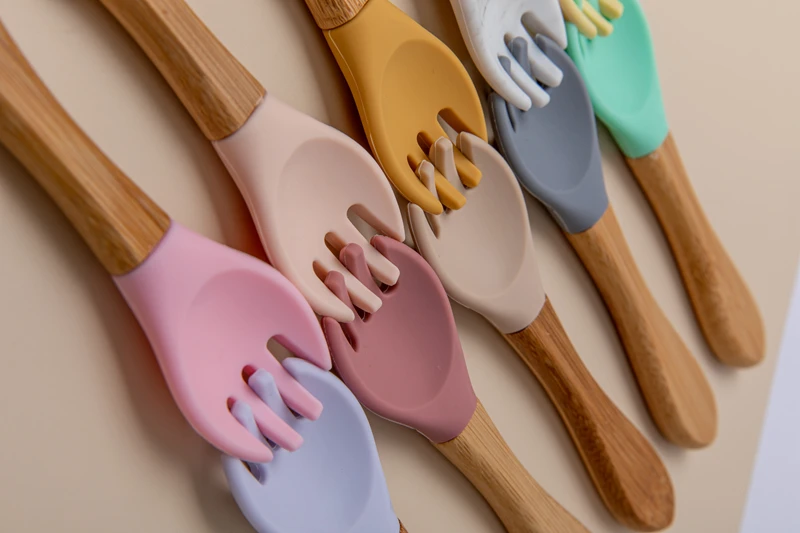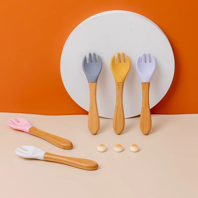 1 шт. детские бамбуковые вилки силиконовые деревянные ложки для кормления детей ясельного возраста аксессуары для кормления детей органические BPA бесплатно пищевой материал