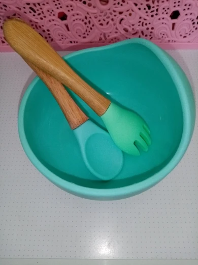 Цвет не соответствует заявленному. Заказывали mint, а прислали светло зелёный. Мы заказывали к тарелочке с ложкой, чтобы был комплект, но не получилось. К качеству претензий нет. Доставка достаточно быстрая в сборной посылке.