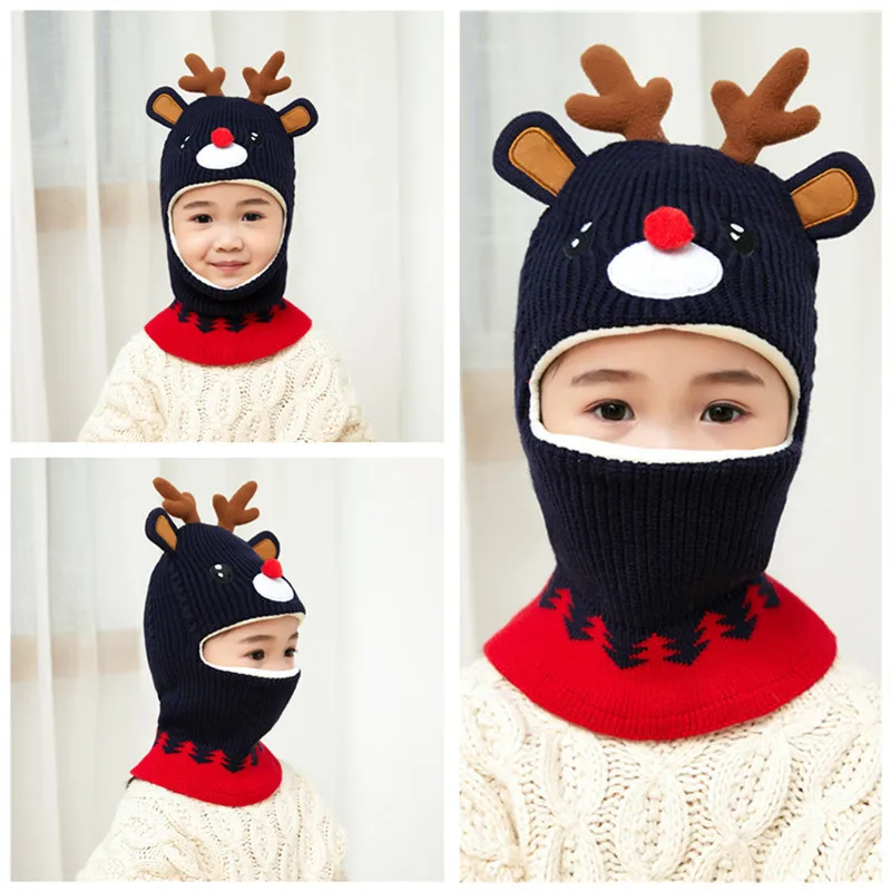 Новая зимняя детская плюшевая шапка, шарф, детские шапки с капюшоном с изображением медведя, динозавра, вязаные шапки для маленьких девочек и мальчиков, Детская кепка с капюшоном в масках