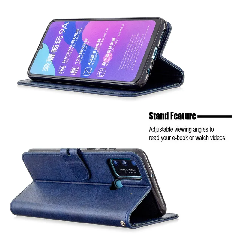 Чехол-книжка для Huawei Honor 9A, кожаный, с отделением-бумажником