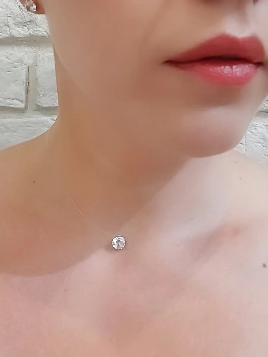 Женское колье из серебра 925 пробы, со сверкающим кристаллом