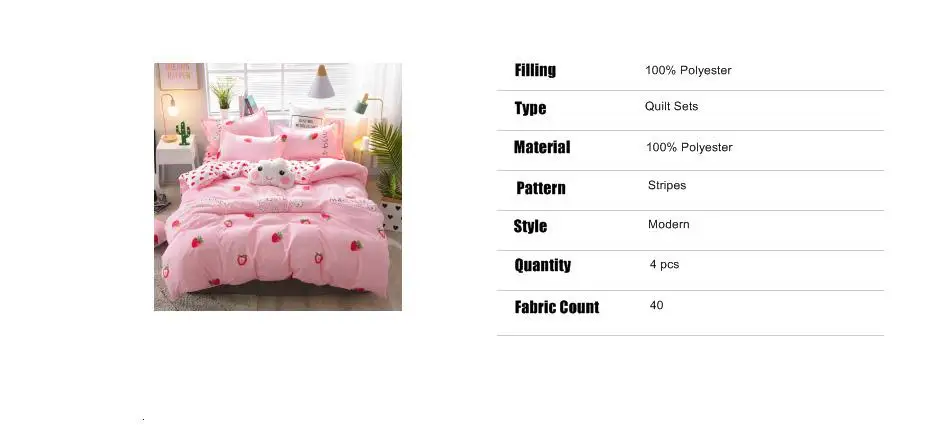 Комплект постельного белья из розовой клубники, размер KingQueen, простыни, детское мягкое одеяло, покрывало из полиэстера, наборы для студенческих общежитий