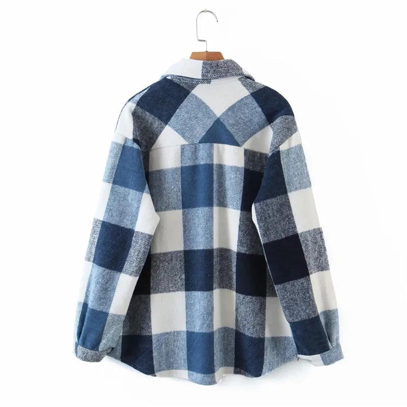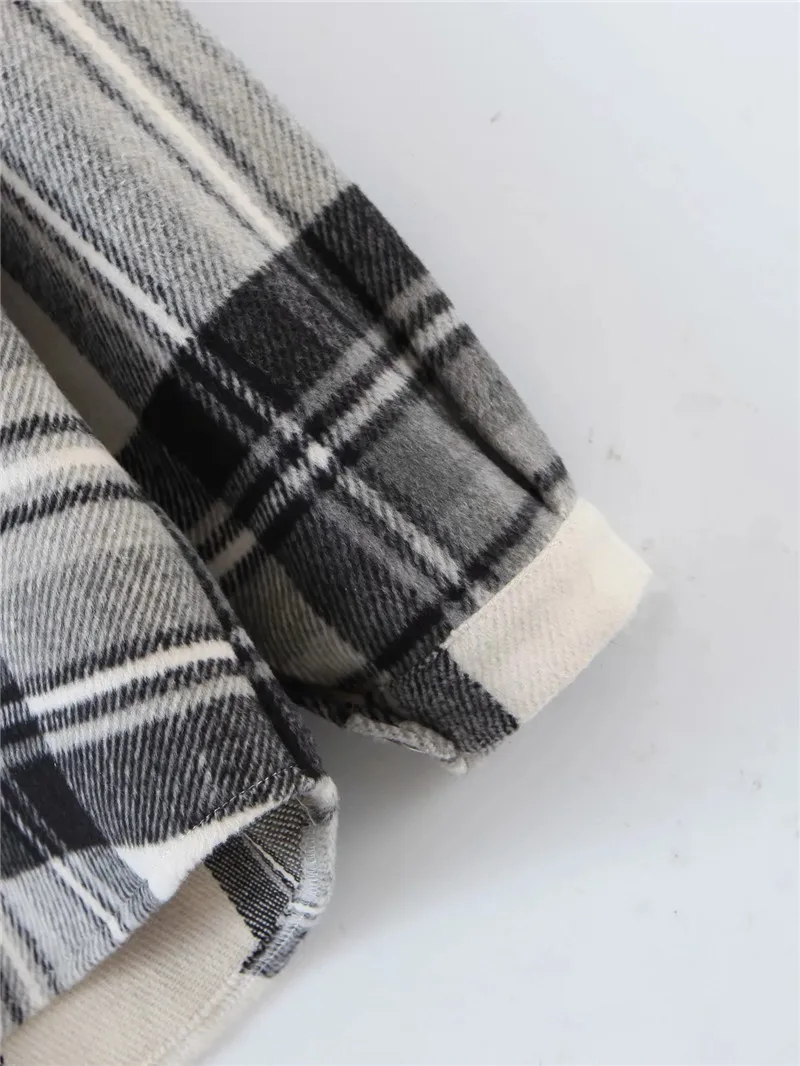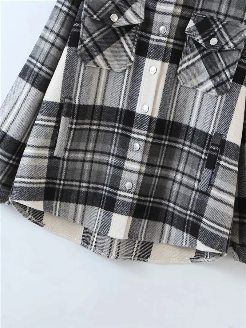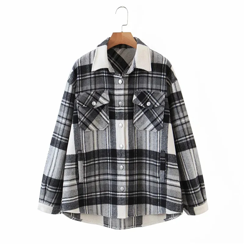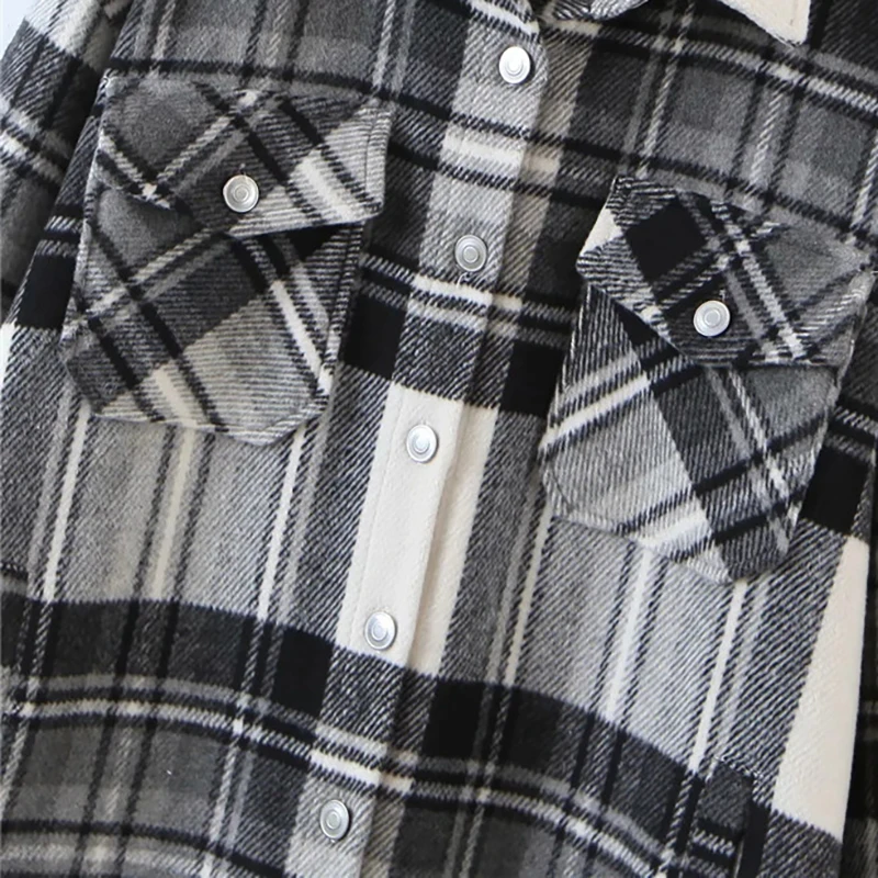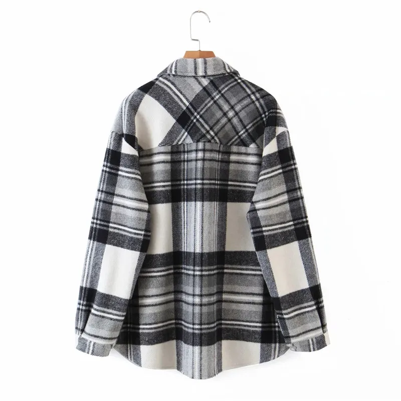 Merodi Женская мода черная клетчатая Осенняя свободная шерстяная длинная рубашка куртки Женская стильная однобортная Верхняя одежда Пальто оверсайз