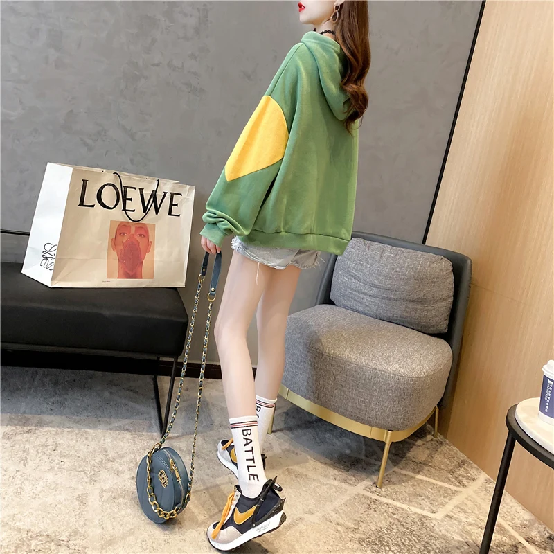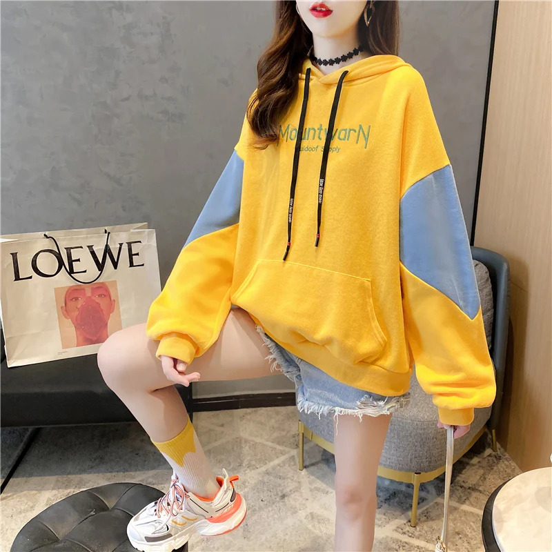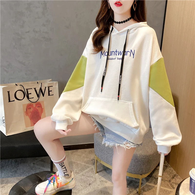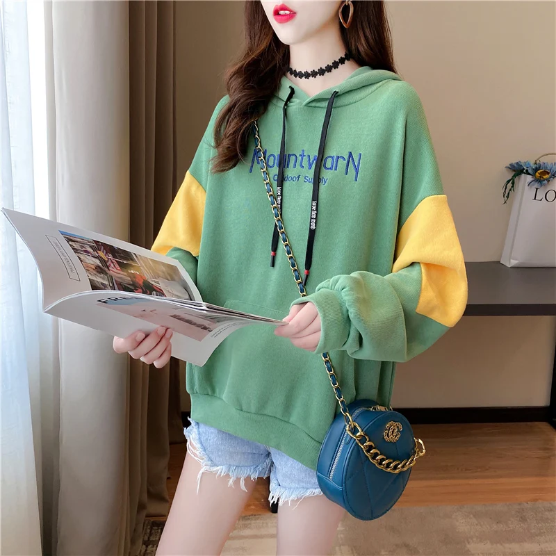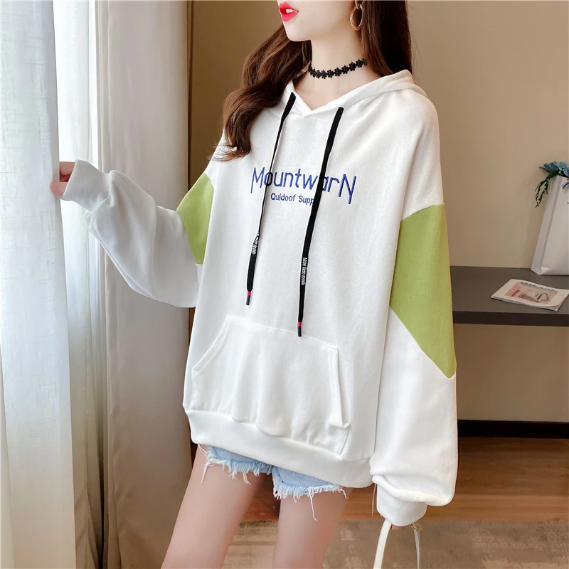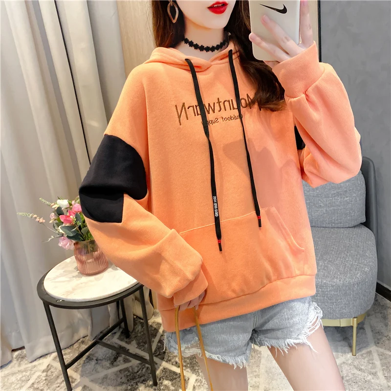 Осенние хлопковые толстовки, Женская толстовка, Свободный Тонкий пуловер с вышивкой, Женский свитшот с надписью KM9608