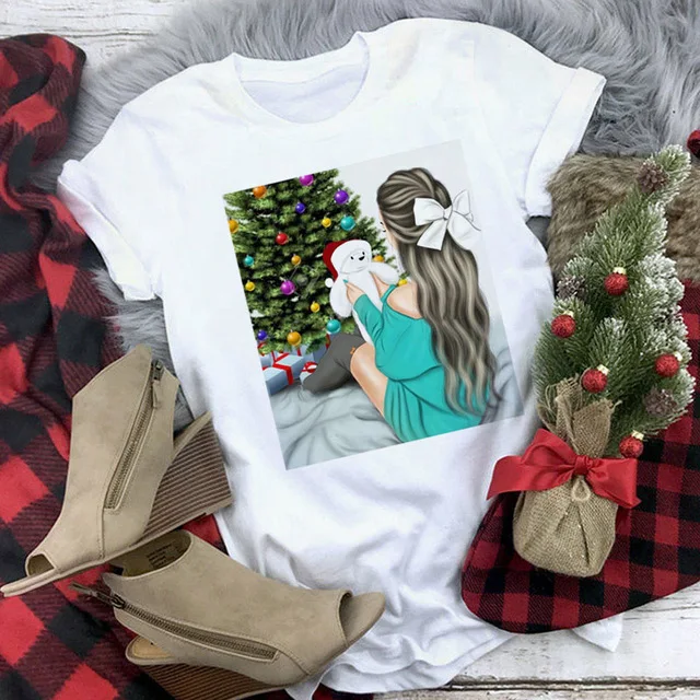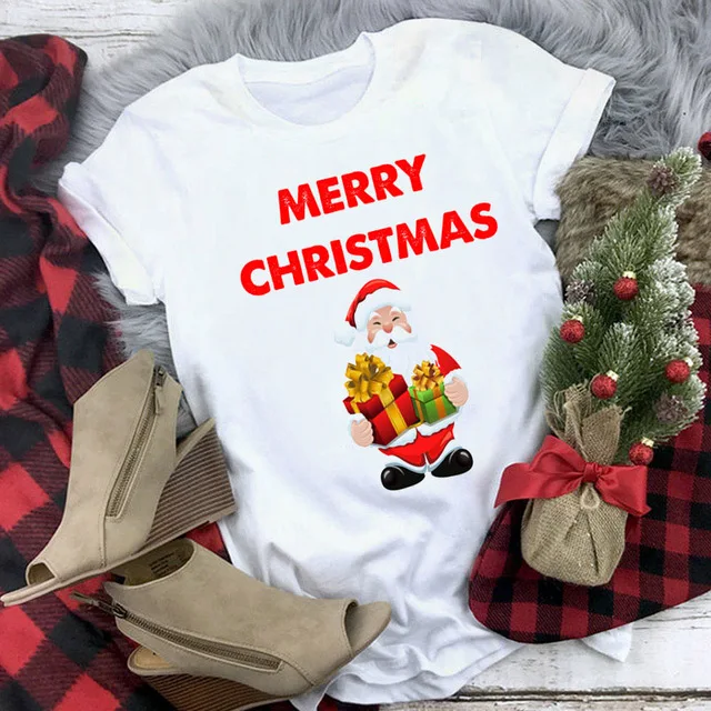 Новинка, женская футболка, Рождественская футболка, топы с принтом ...