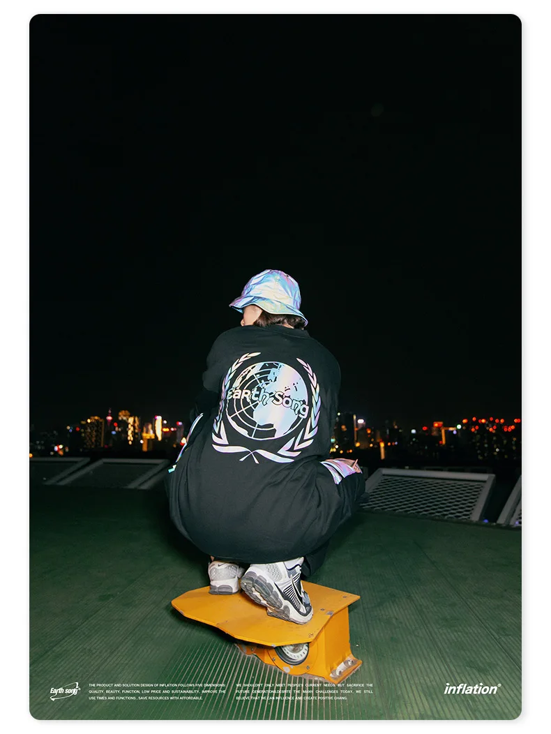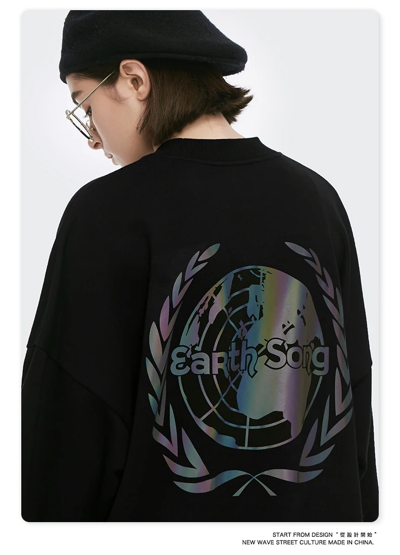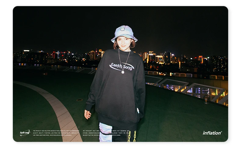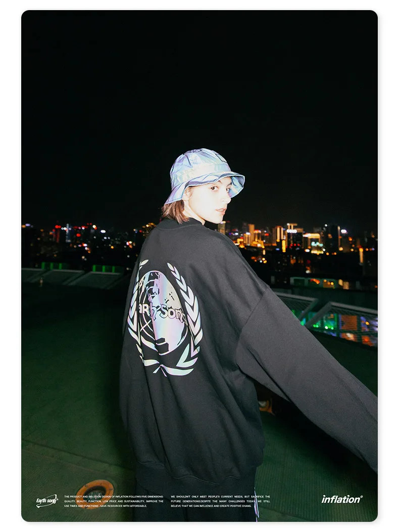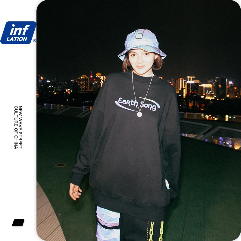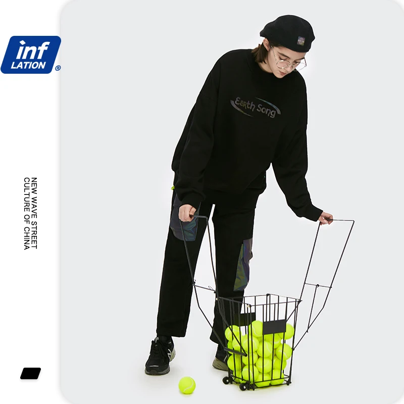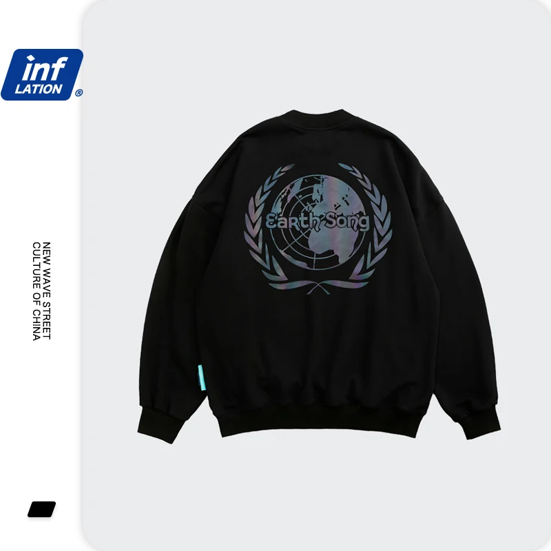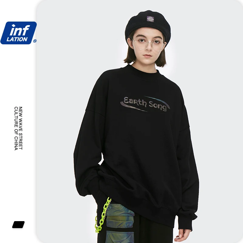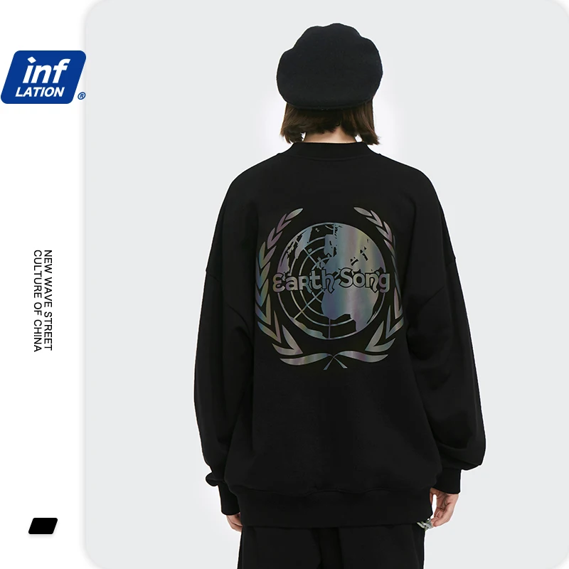 INFLATION Мужская толстовка в графическом отражении оверсайз Мужская Уличная Стильная черная толстовка с круглым вырезом для мужчин 1330W