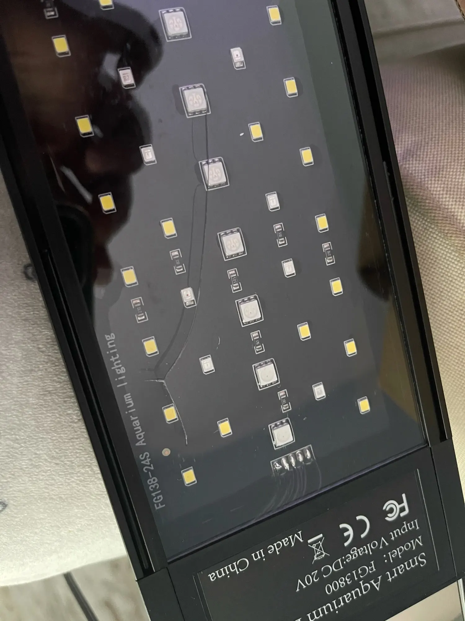Заказ доставляется из полланда в Бразилию довольно быстро. Я надел свет на свой аквариум, и он хорошо сидит. Первое впечатление заключается в том, что сила света подходит для растений. Предустановленное ежедневное время прохладное. Я буду продолжать следить за тем, как рыбы и растения работают с этим светом. Плохо то, что при транспортировке свет был несколько поврежден. Повреждение находится в одном из углов рамы, где крепится кронштейн, как показано на рисунке. Это повреждение делает угол подвержен еще большему разрыву. Если это произойдет, кронштейн будет свободным от рамки. Поэтому я хотел бы заменить!