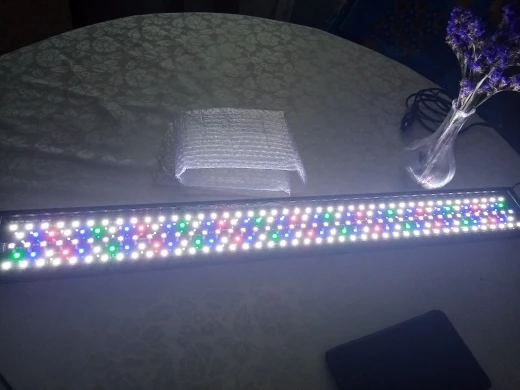 Супер продавец! Доставка 4 дня в Ставропольский край. Отличная лампа. Брала в дополнение к chehiros в травник. Очень яркая. RGB полный спектр оживил краски в аквариуме. Функция лунный свет очень красиво. Настройка восход закат лёгкая. Есть часы 12 и 24 часа. Отличная вещь по приемлемой цене. Рекомендую.
