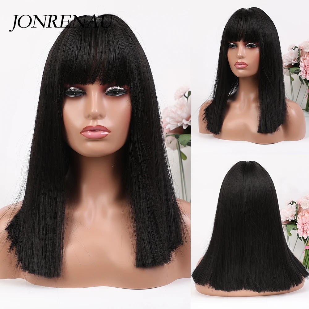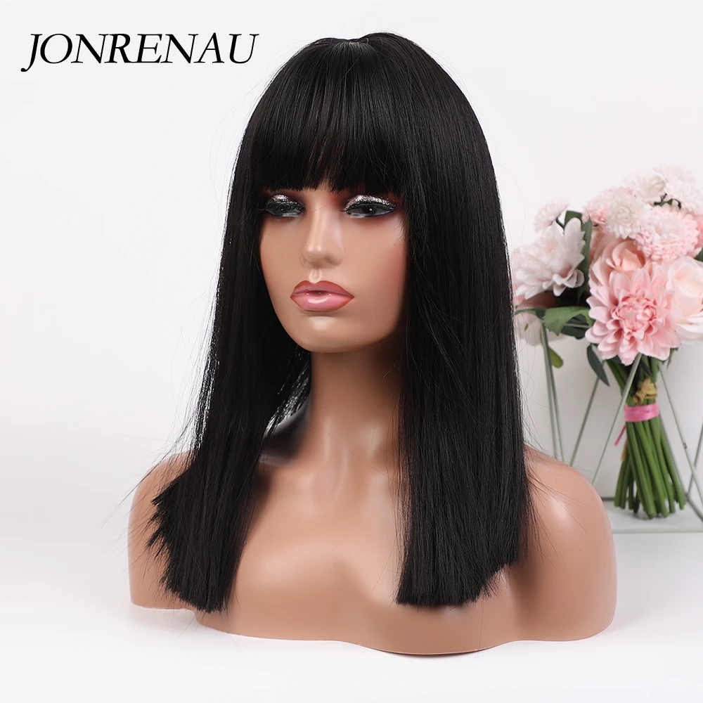 Женский парик с челкой JONRENAU, короткий прямой черный парик из синтетического волокна с высокой плотностью, для повседневной носки