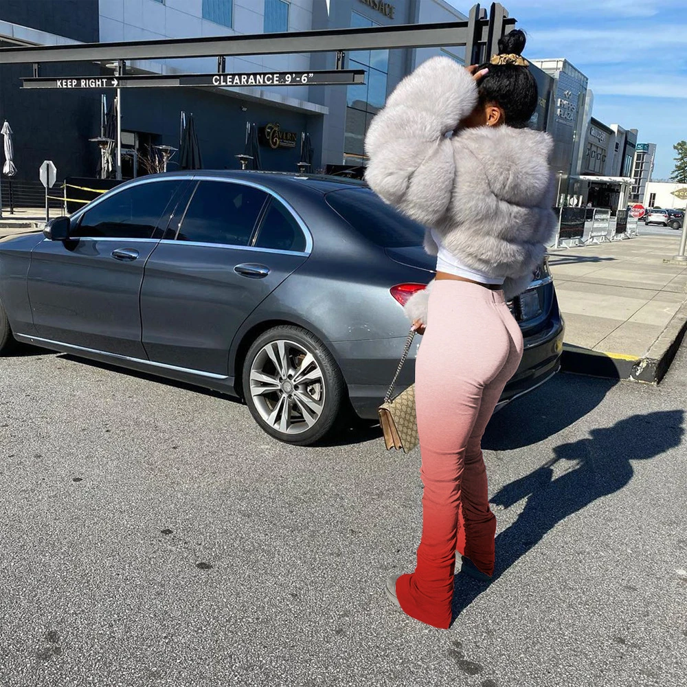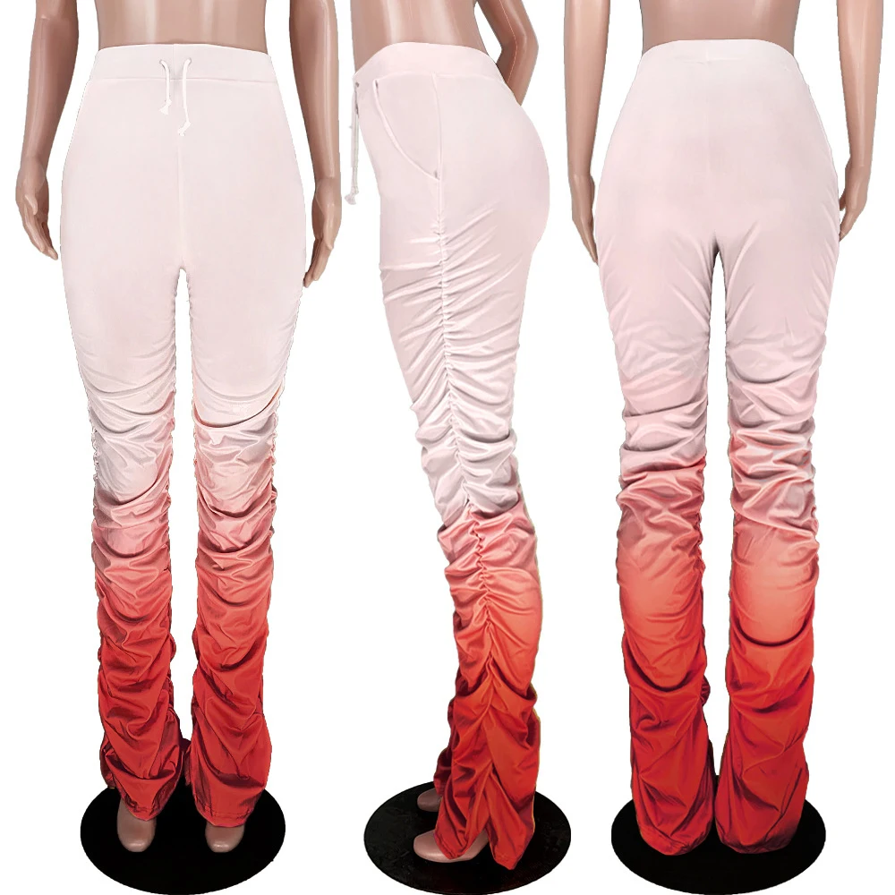 Сексуальная градиент наборный фон для фотографирования в технике Tye краситель штаны Для женщин наборный Леггинсы для бега женские эластичные расклешенных брюк-клеш с рюшами и штаны