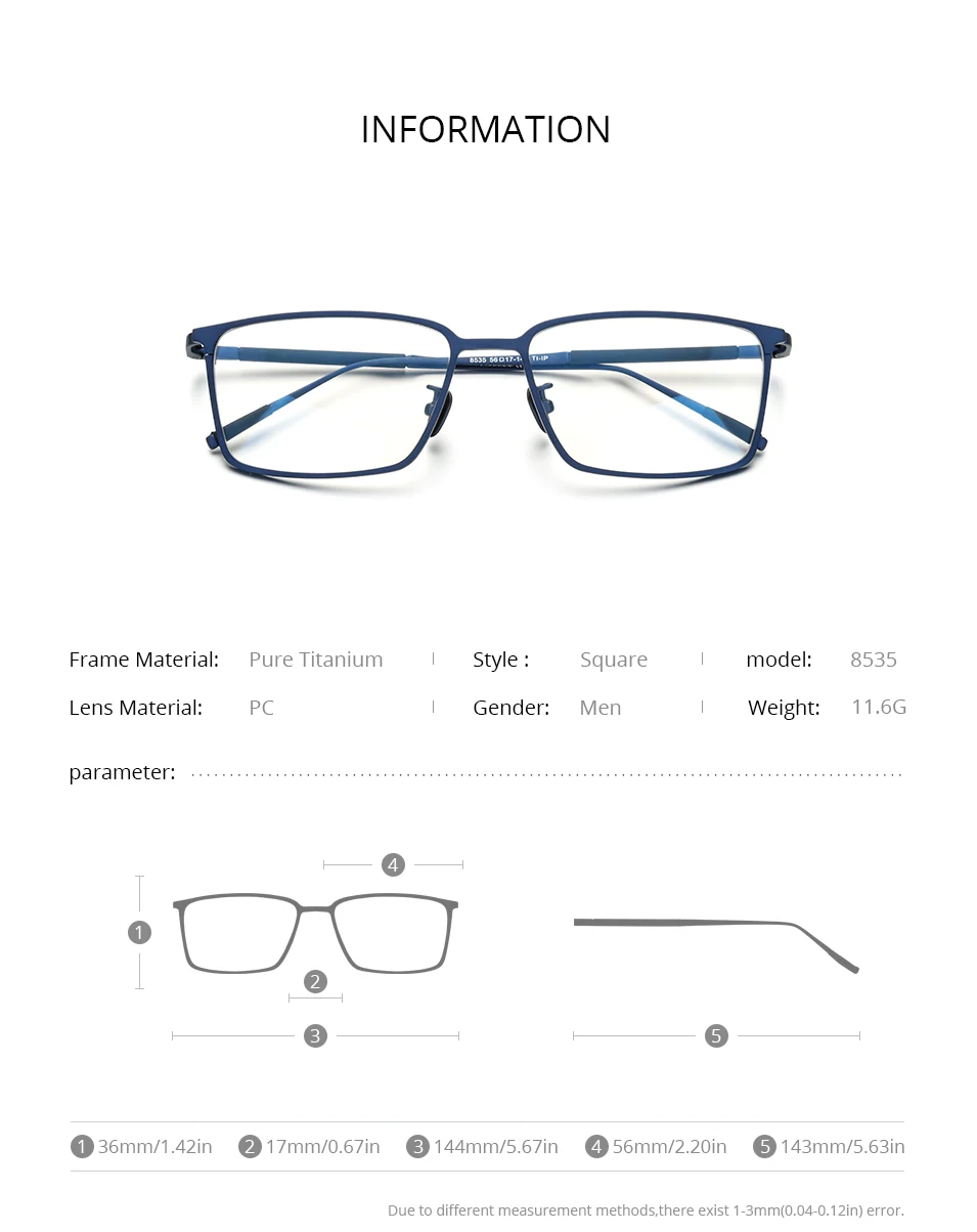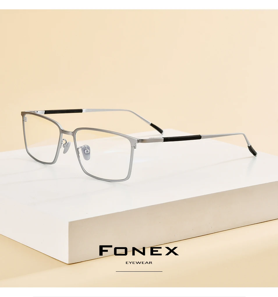 FONEX Мужские очки из чистого титана с квадратной оправой для близо...