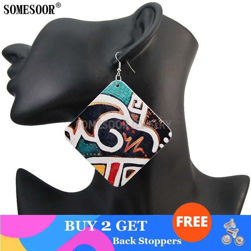 SOMESOOR дизайнерские квадратные деревянные серьги-подвески с художественным рисунком из Африканской ткани
