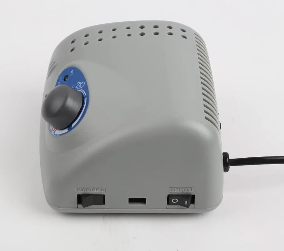 Specification: Item Type: Electric Manicure Drill & Accessory Material: Plastic+ABS Model: 210+105L Rotate Speed: 0-45000RPM Voltage: 110V/220V,50-60Hz Plug:EU Power:65W Output: DC 0-32V Color: As Picture Shown Handpiece weight:265g Main Machine Weight:1150g Main Machine Size: 13.5*12*8.5cm/5.31*4.72*3.35in Features: 1. High Precision,Long Life Still steady even working in high speed.NO vibration and low noise. 2. Voltage Choice Can be choose 110V or 220V 3. Drill Bits Holder 18*Drill Bits Holder 4. Foot Pedal No need to press the power switch.An optional foot pedal is included for the ability to power the machine on or off for hands free use. 5. Potable Polisher : Equipped with fast head-loading mechanism ,good locking effective , high speed .low variations,and safety with low voltage machine . 6. Power Box : Stable power delivery,overload protection,effective converter,foot push, non-polarized speed adjustment. 7. Stable Functioning: The polishers produced are stable functioning, high speed ,fast polishing , quipped with head lock . 8. Multifunction: Combination of fast converting polisher and multi-function power box .Carving, Engraving, Routing, Grinding, Sharpening, Sanding, Polishing for Acrylic Nails,Gel Nails,Artificial Nails,Natural Nails,Pets' Nails,not suggest using for something hard. 9. Application: Available for using at nail salon,beauty parlor ,spa or personal manicure pedicure,nail art,etc 10. Practical: TWIST-LOCK Forward/Reverse direction switch suitable for RIGHT HANDED or LEFT HANDED use, Foot pedal included. Note: 1.Please keep equipment dry. 2. Please choose the correct power according the voltage Tips:Must to choose the correct voltage(110V or 220V). 3.Please confirm the drill bit clip locked before using. 4.Please stop using when you find something strange or noise. 5.Please change the speed gradually,don't adjust with significant adjustments. 6.Don't touch the parts in running.it is dangerous. 7.Please stop working if you want change the direction of rotation. Product Include: 1 x Main Machine 1 x Handpiece 1 x Foot Switch 1 x Spare Carbon Brush 1 x Wrench 1 x User Manual(English) 1 x Box