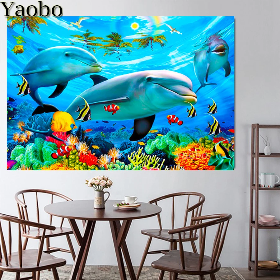 5D алмазная вышивка, дельфин, рыба, животное, подводный мир, полностью квадратные, круглые, сверло, алмазная вышивка, своими руками