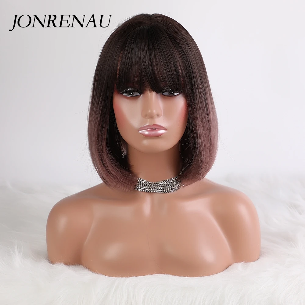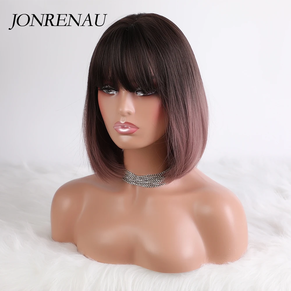 Парик JONRENAU для женщин, с челкой светильник-фиолетовый, с короткими синтетическими волосами, с эффектом омбре, для косплея Лолиты, 14 дюймов