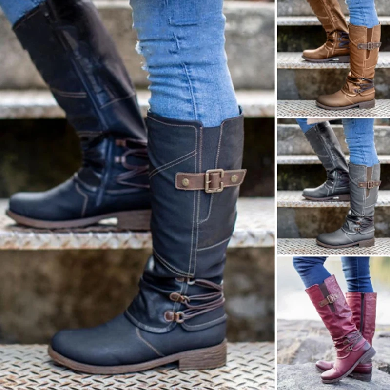 Новые женские сапоги до колена на танкетке, женская обувь на плоской подошве, кожаные сапоги на платформе и высоком каблуке, женская обувь на шнуровке, женские зимние сапоги