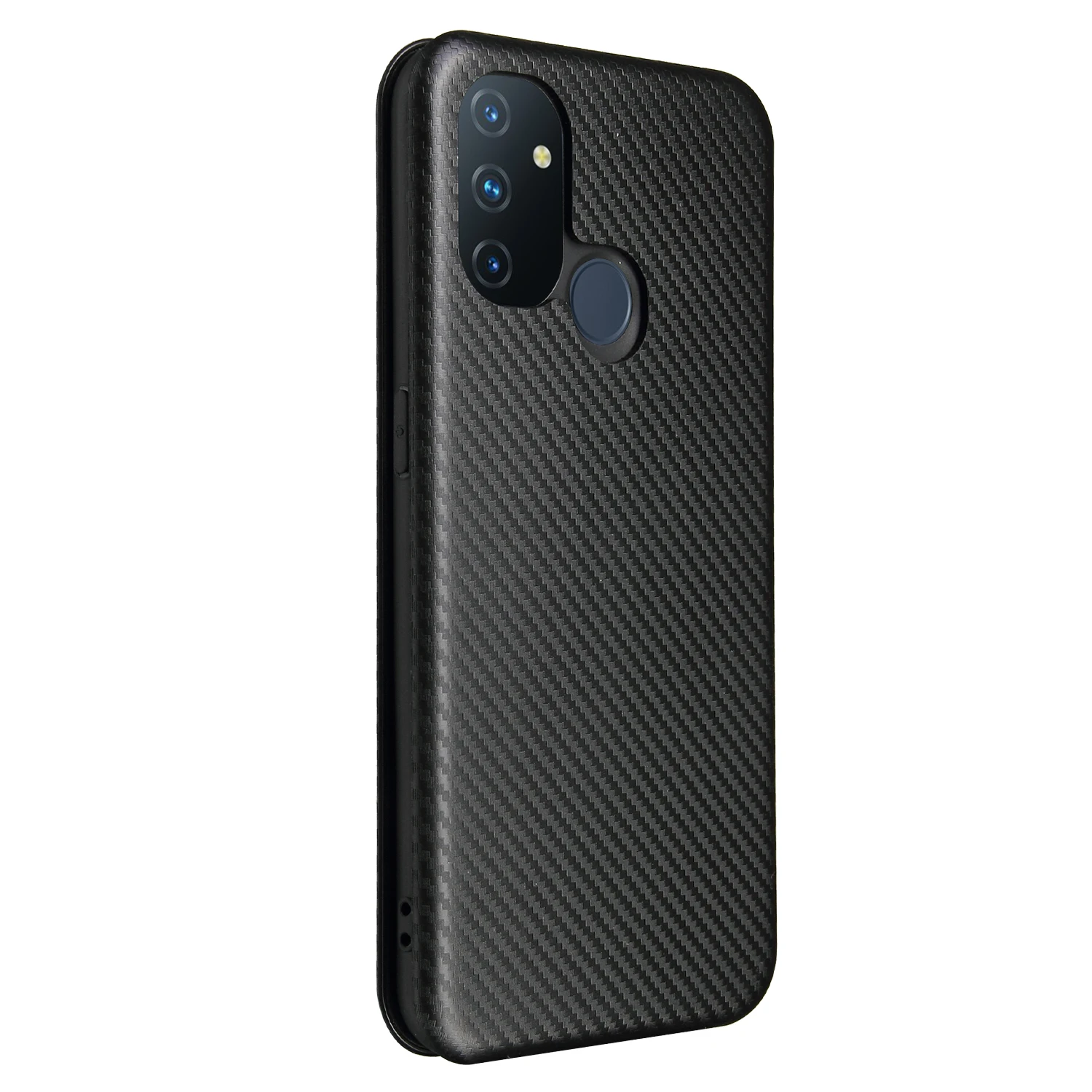 Чехол-книжка для Oneplus Nord N10, кожа, углеродное волокно, магнитный