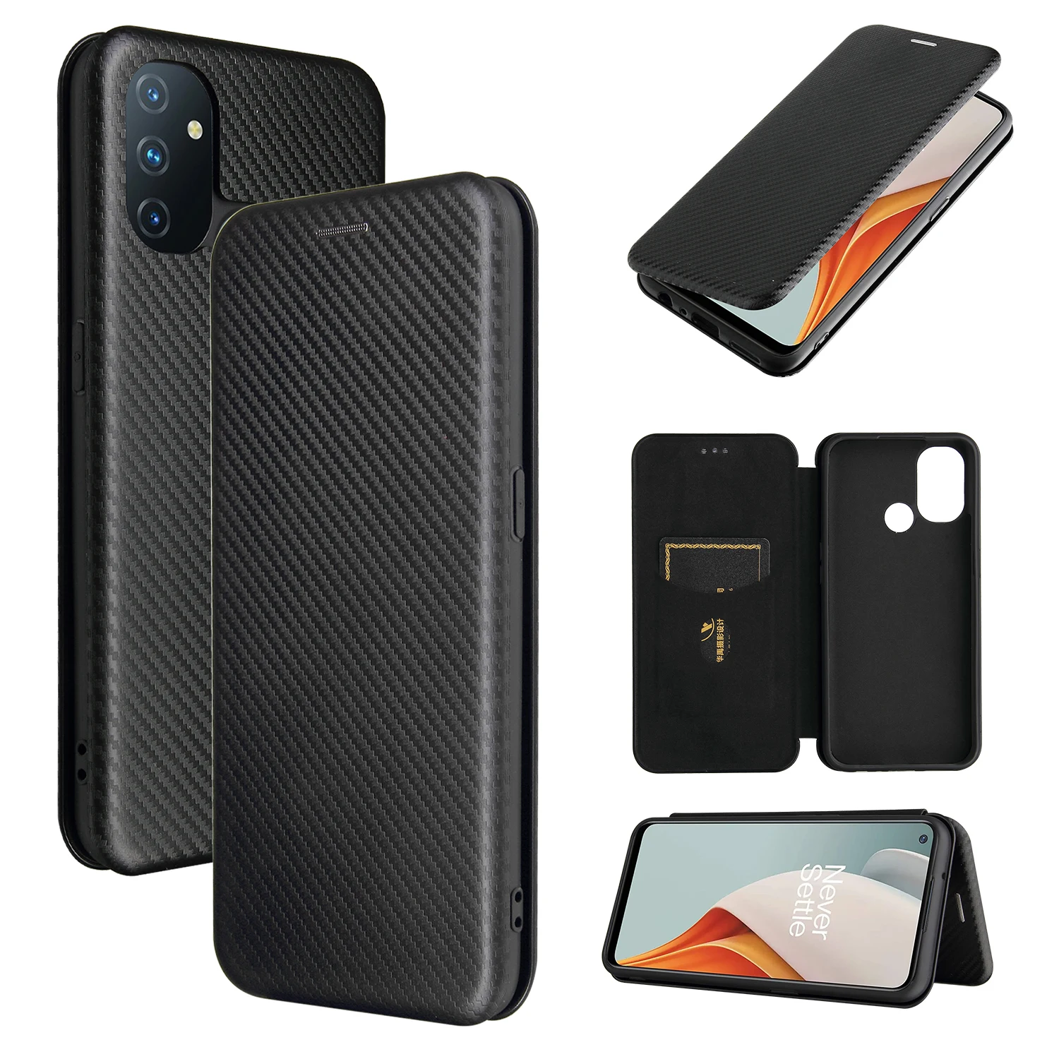Магнитный чехол-книжка из углеродного волокна для Oneplus Nord CE 2...