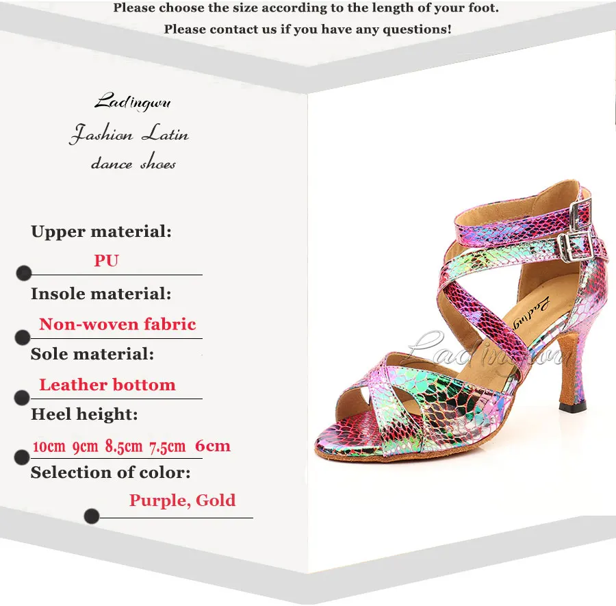 Женские туфли для латиноамериканских танцев Ladingwu, фиолетовая бл...