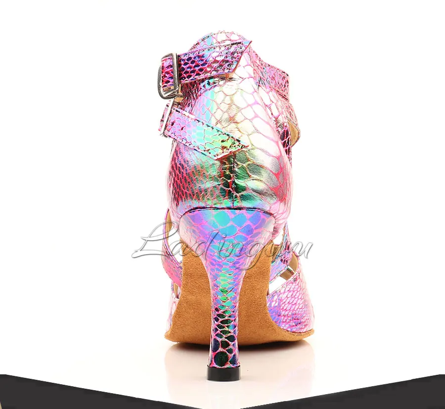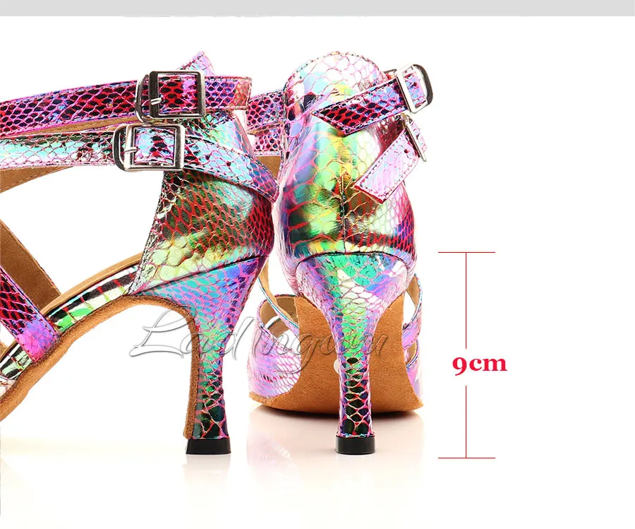 Туфли женские для латиноамериканских танцев, хамелеон блестящий, дл...