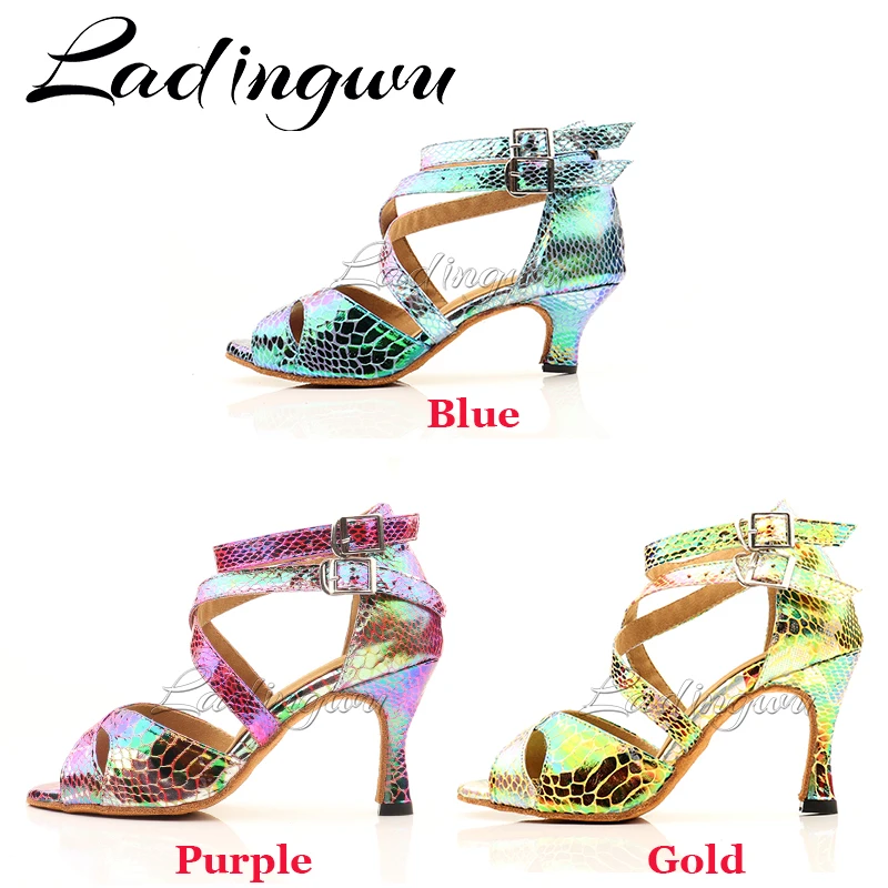 Женские туфли для латиноамериканских танцев Ladingwu, с лазерной гр...